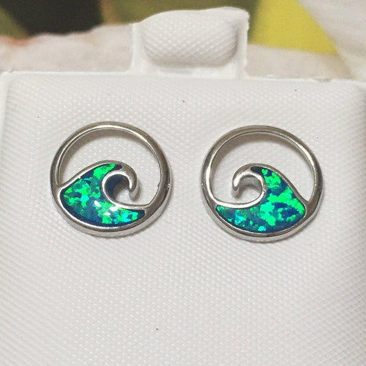 Unique Beautiful Hawaiian Blue Opal Ocean Wave Earring, Sterling Silver Blue Opal Wave Stud Earring, E8413 Mother Birthday Mom Gift