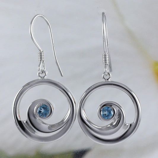 Beautiful Hawaiian Genuine Blue Topaz Ocean Wave Earring, Sterling Silver Wave Dangle Earring, E8916 Mother Birthday Mom Wife Gift