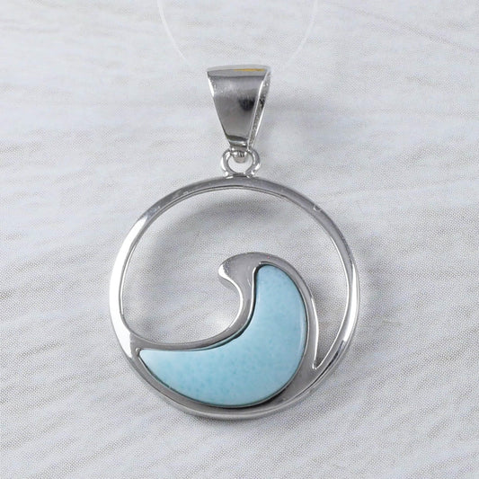 Unique Hawaiian Genuine Larimar Ocean Wave Necklace, Sterling Silver Larimar Ocean Wave Pendant, N9326 Birthday Mother Wife Mom Gift