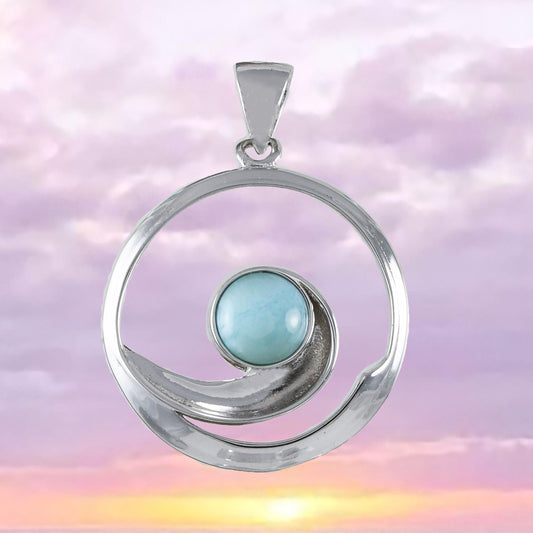 Unique Hawaiian Genuine Larimar Ocean Wave Necklace, Sterling Silver Larimar Ocean Wave Pendant, N8450 Birthday Mother Wife Mom Gift