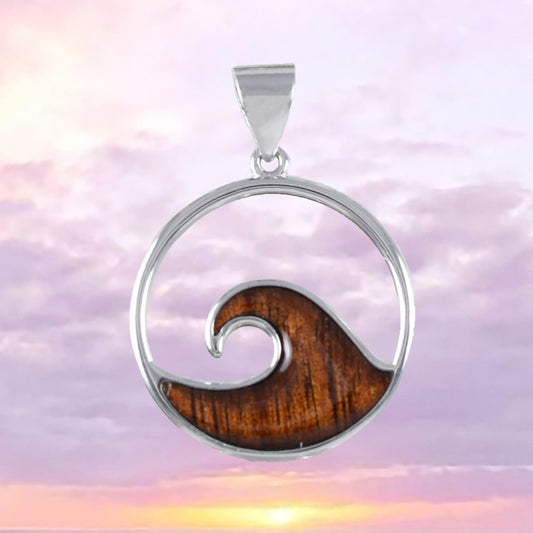 Unique Hawaiian Genuine Koa Wood Ocean Wave Necklace, Sterling Silver Wave Pendant, N4480 Birthday Mom Wife Mother Gift
