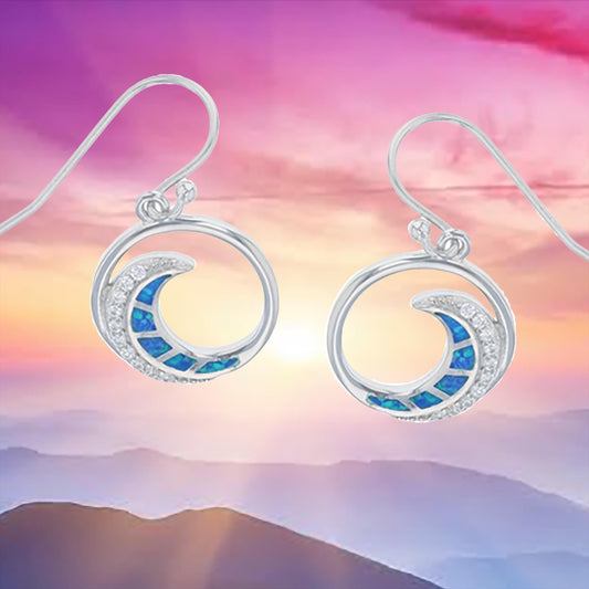 Unique Beautiful Hawaiian Blue Opal Ocean Wave Earring, Sterling Silver Blue Opal Wave CZ Dangle Earring, E8964 Christmas Birthday Mom Gift