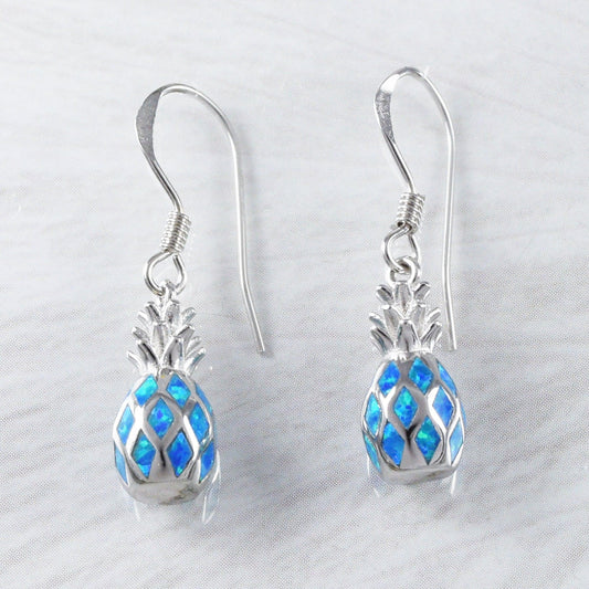 Beautiful Hawaiian Blue Opal 3D Pineapple Earring, Sterling Silver Pineapple Dangle Earring, E9339 Birthday Mom Mother Gift
