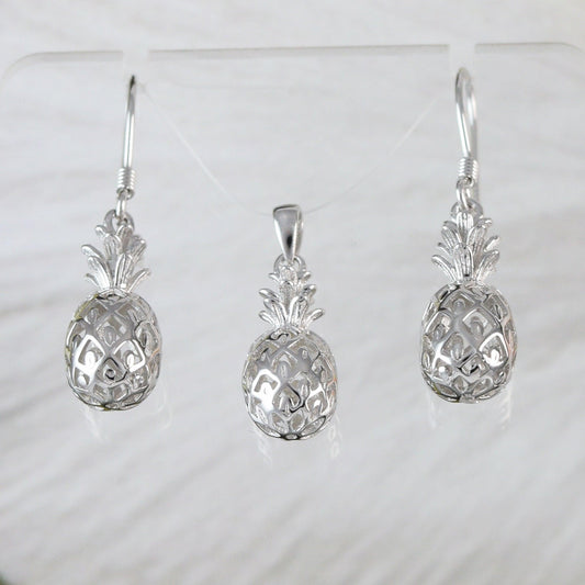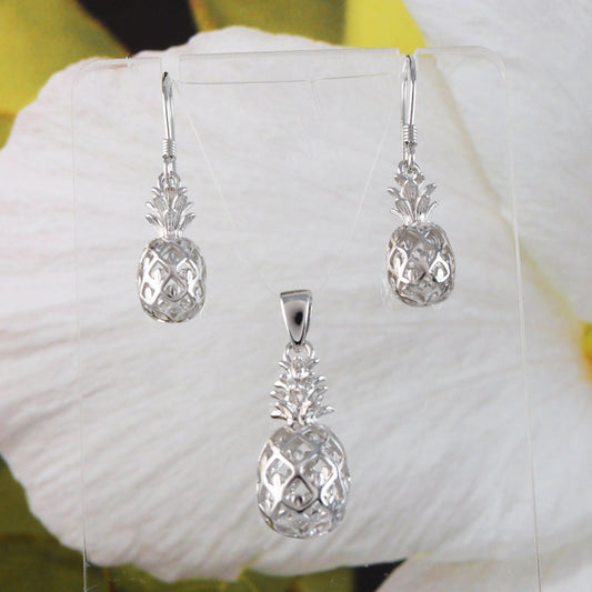Beautiful Hawaiian 3D Pineapple Necklace and Earring, Sterling Silver 3D Pineapple Pendant, N2003S Birthday Mother Wife Mom Gift