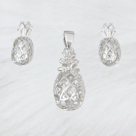 Lovely Hawaiian 3D Pineapple Necklace and Earring, Sterling Silver 3D Pineapple Pendant, N2003S Birthday Mother Wife Mom Gift
