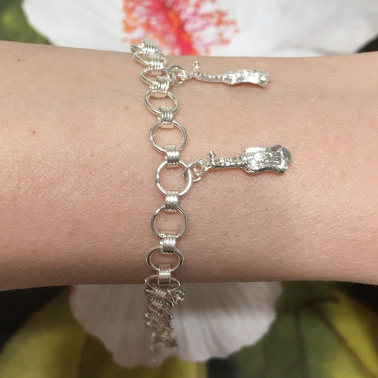 Bracelet à breloques ou bracelet de cheville unique en forme de guitare hawaïenne ou ukulélé, bracelet à breloques en argent sterling, cadeau d'anniversaire pour maman, épouse, mère, B3129