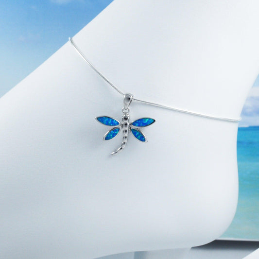 Magnifique bracelet de cheville ou bracelet libellule hawaïen, bracelet à breloques libellule en argent sterling opale bleue, A6146 cadeau d'anniversaire pour maman, épouse, mère