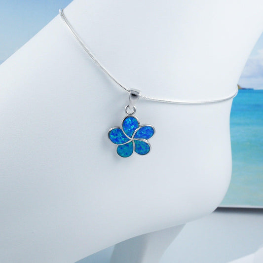 Magnifique bracelet de cheville ou bracelet en plumeria opale bleue hawaïenne, bracelet à breloques en argent sterling en opale plumeria, cadeau d'anniversaire pour maman A2032