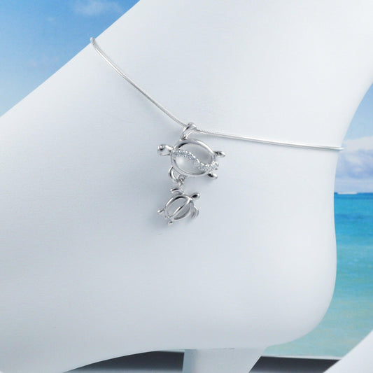 Magnifique bracelet de cheville ou bracelet hawaïen pour maman et bébé tortue de mer, bracelet à breloques en argent sterling, A6143, cadeau d'anniversaire pour maman, épouse, mère