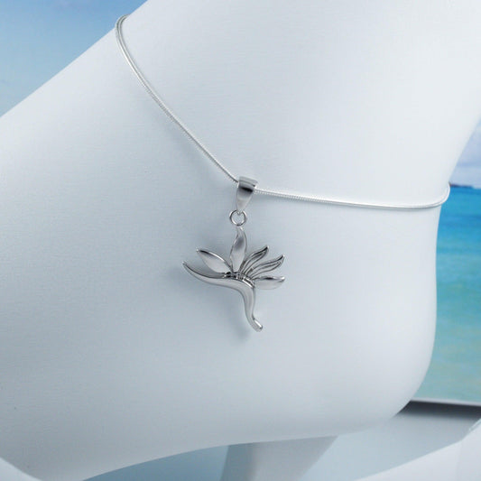 Joli bracelet de cheville ou bracelet hawaïen grand oiseau de paradis, bracelet à breloques oiseau de paradis en argent sterling A6113 cadeau d'anniversaire pour maman