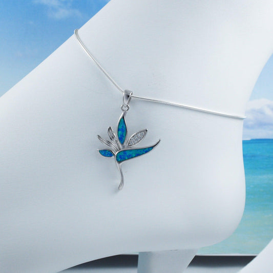 Bracelet de cheville ou bracelet unique et magnifique en opale bleue de grande taille avec oiseau de paradis hawaïen, bracelet à breloques en argent sterling avec opale et zircone cubique, A6156