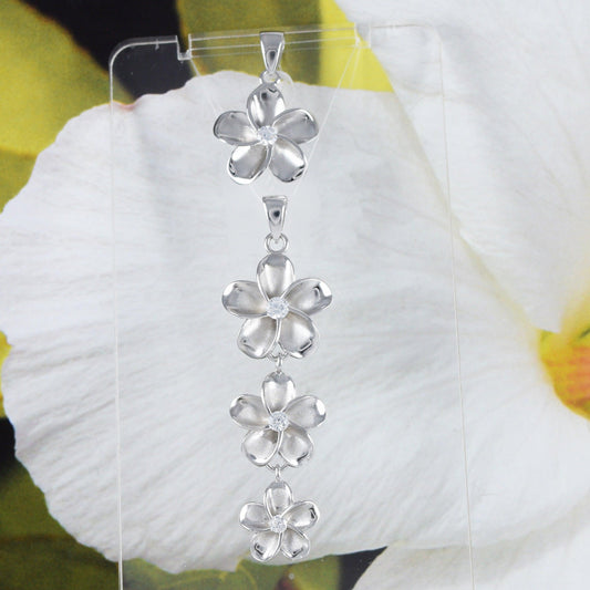 Joli collier et boucles d'oreilles Plumeria hawaïennes, pendentif en argent sterling avec fleur de Plumeria CZ, N2001S, cadeau d'anniversaire pour mère, épouse, maman et fille