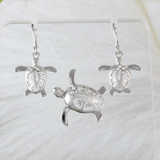 Collier et boucles d'oreilles uniques en forme de tortue de mer hawaïenne et hibiscus, pendentif en argent sterling avec fleur de tortue et hibiscus CZ, cadeau d'anniversaire pour maman N2024S