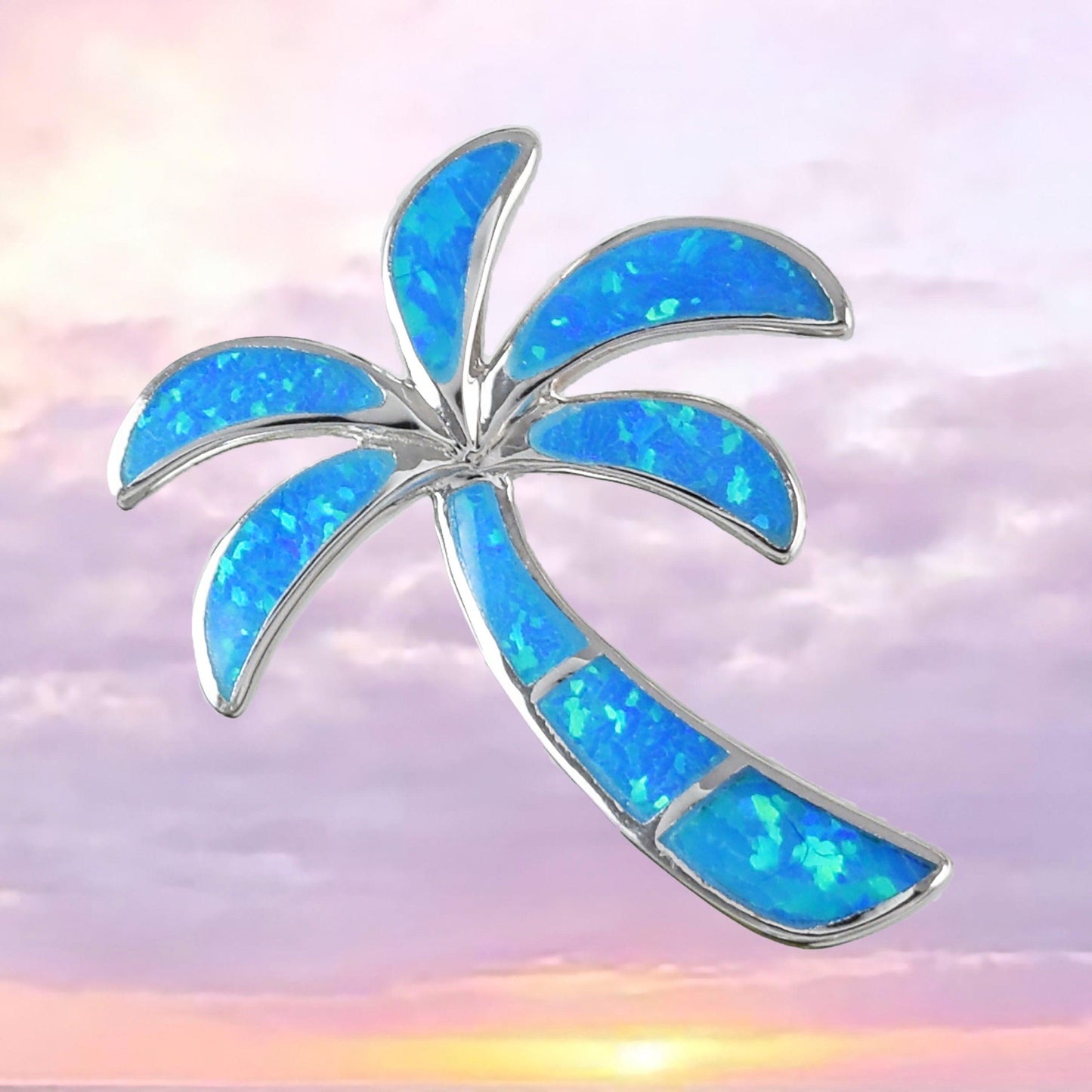 Beautiful Hawaiian Blue Opal Palm Tree Necklace, Sterling Silver Blue Opal Palm Tree Pendant, N6014 Birthday Mother Mom Gift