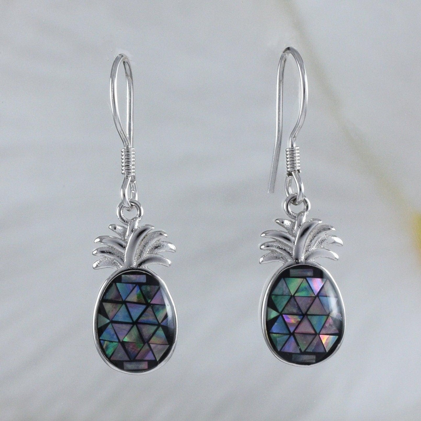 Beautiful Hawaiian Genuine Paua Shell Pineapple Earring, Sterling Silver Pineapple Dangle Earring, E8927 Birthday Wife Mom Mother Gift