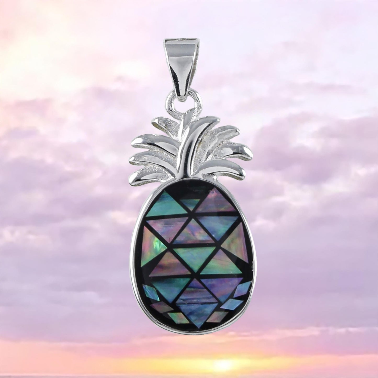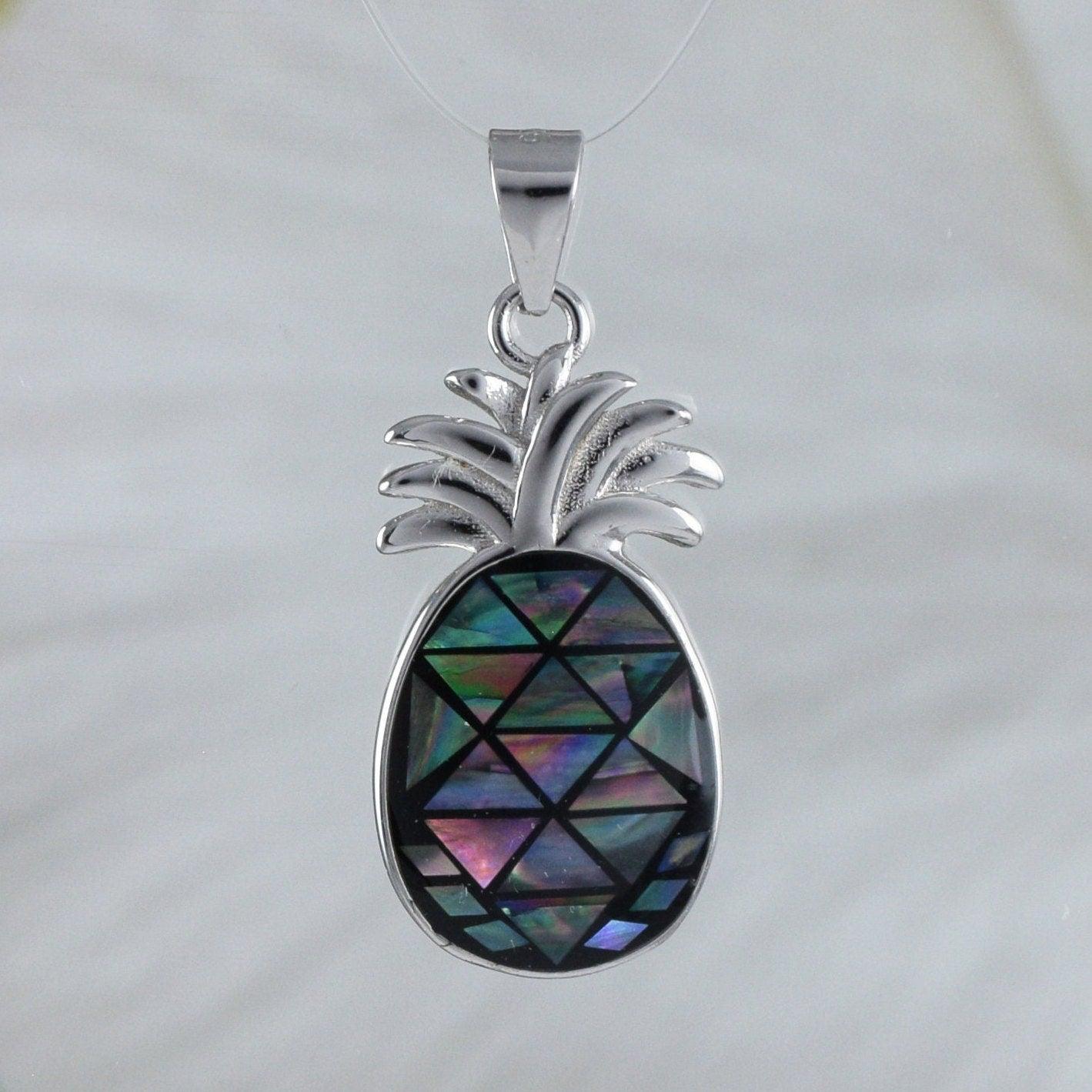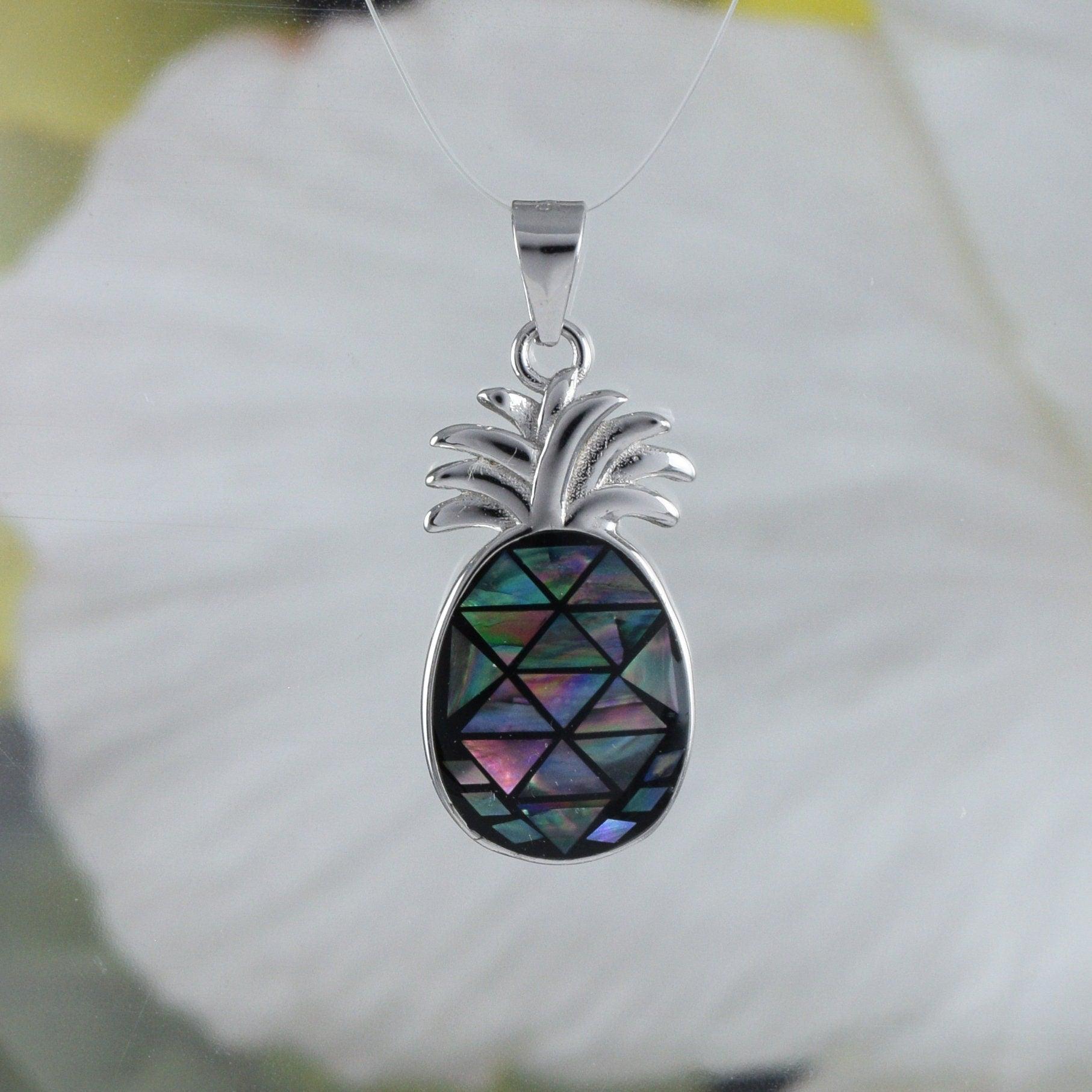 Beautiful Hawaiian Genuine Paua Shell Pineapple Necklace, Sterling Silver Abalone MOP Pineapple Pendant, N8848 Birthday Mom Mother Gift