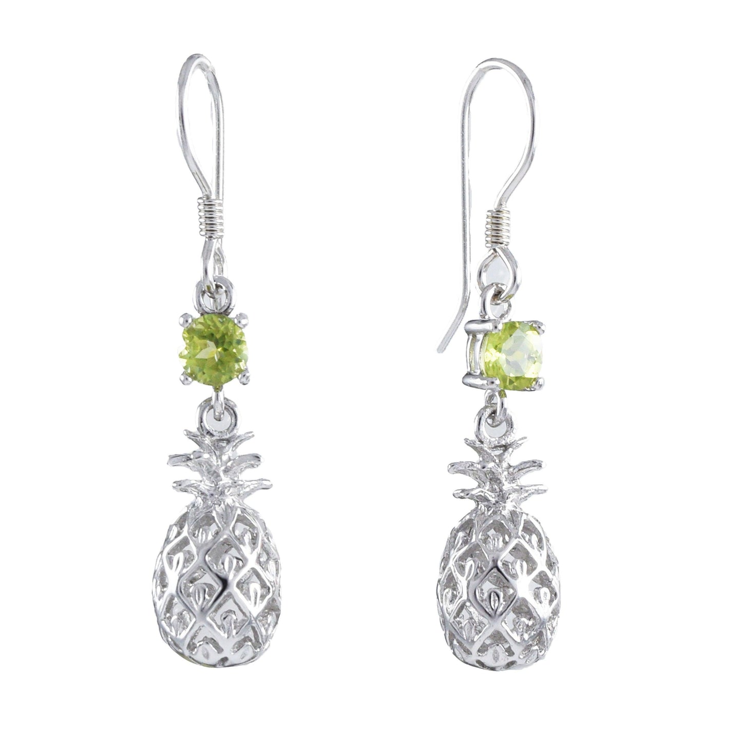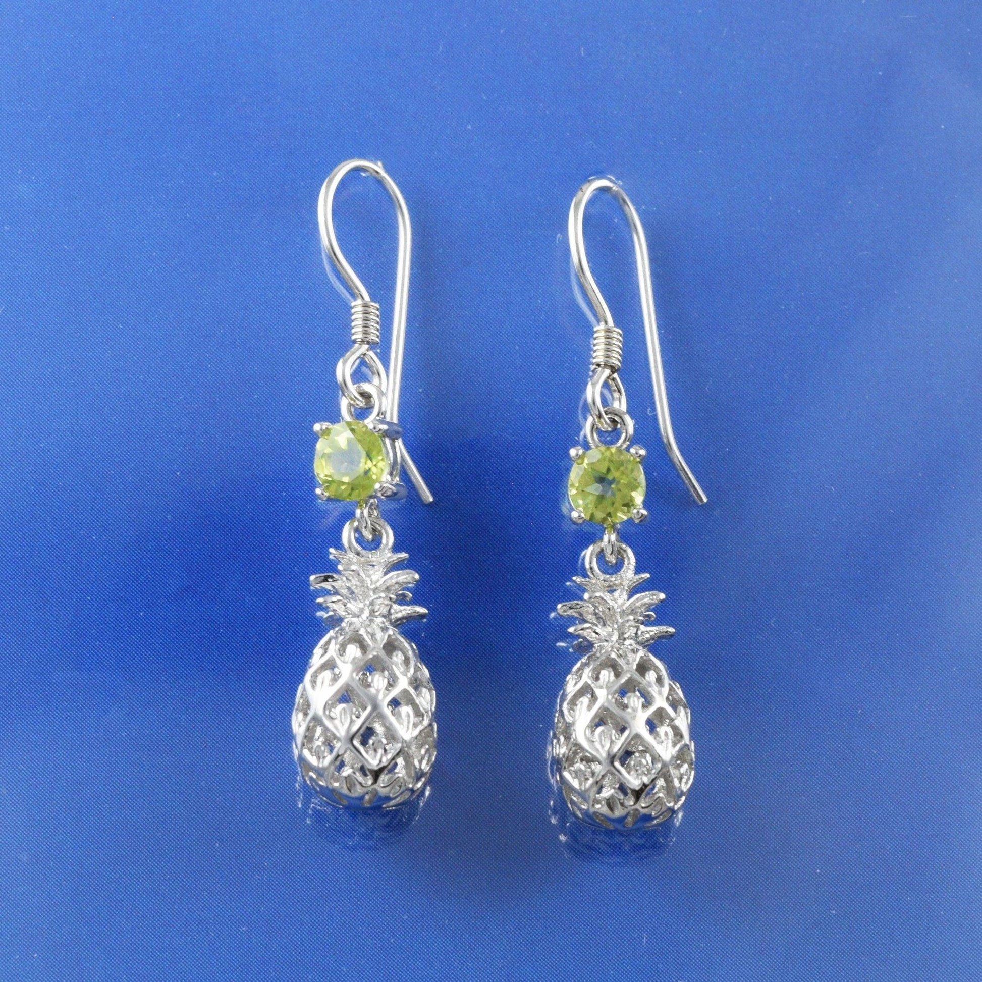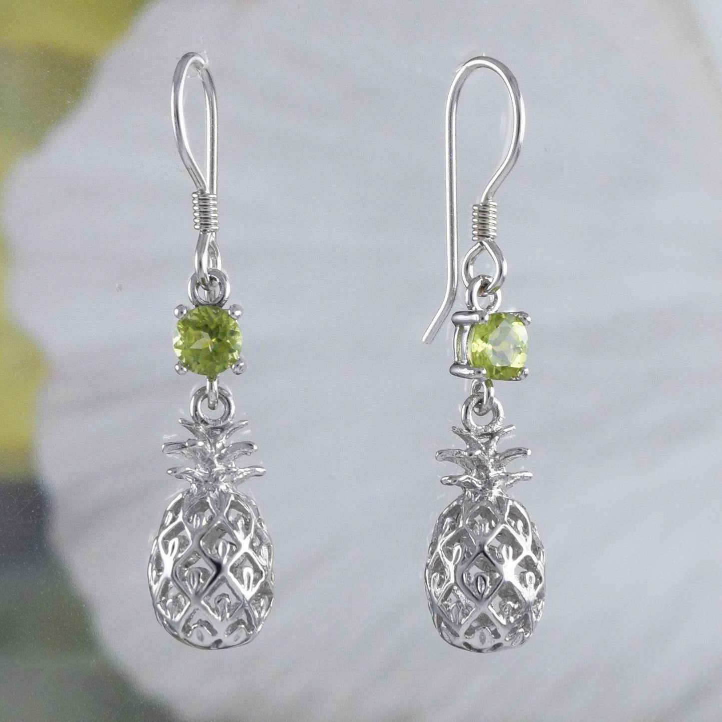 Beautiful Hawaiian Genuine Peridot 3D Pineapple Earring, Sterling Silver Pineapple Dangle Earring, E8911 Birthday Wife Mom Mother Gift