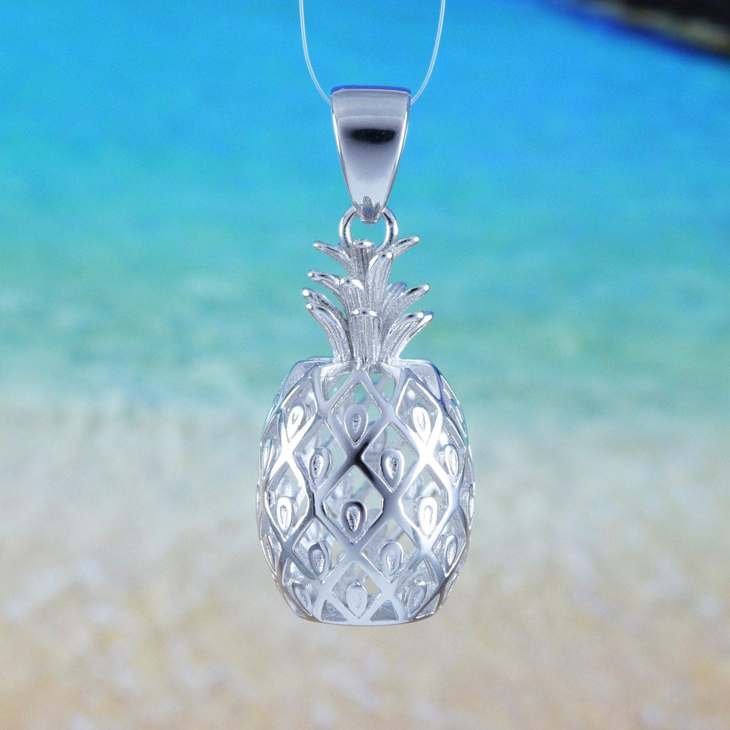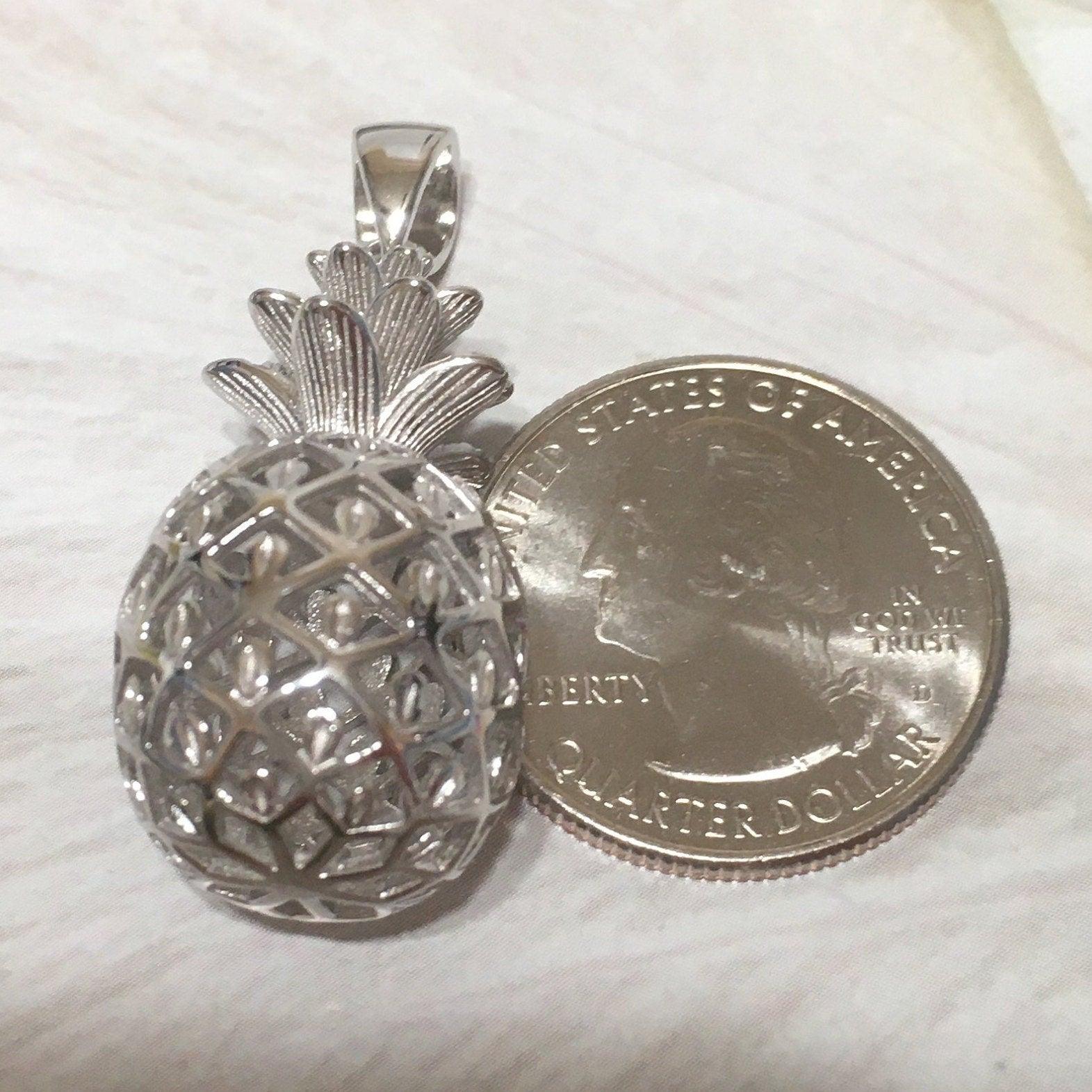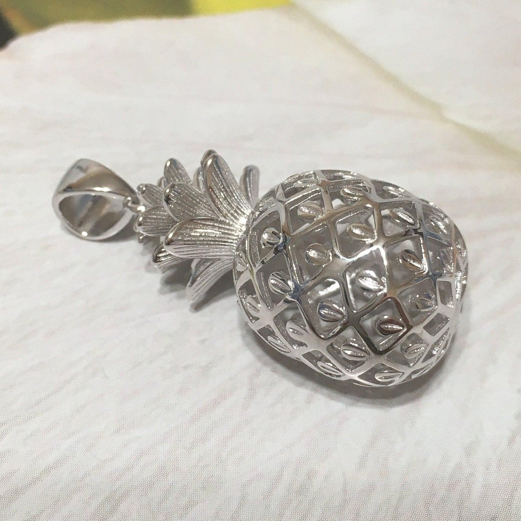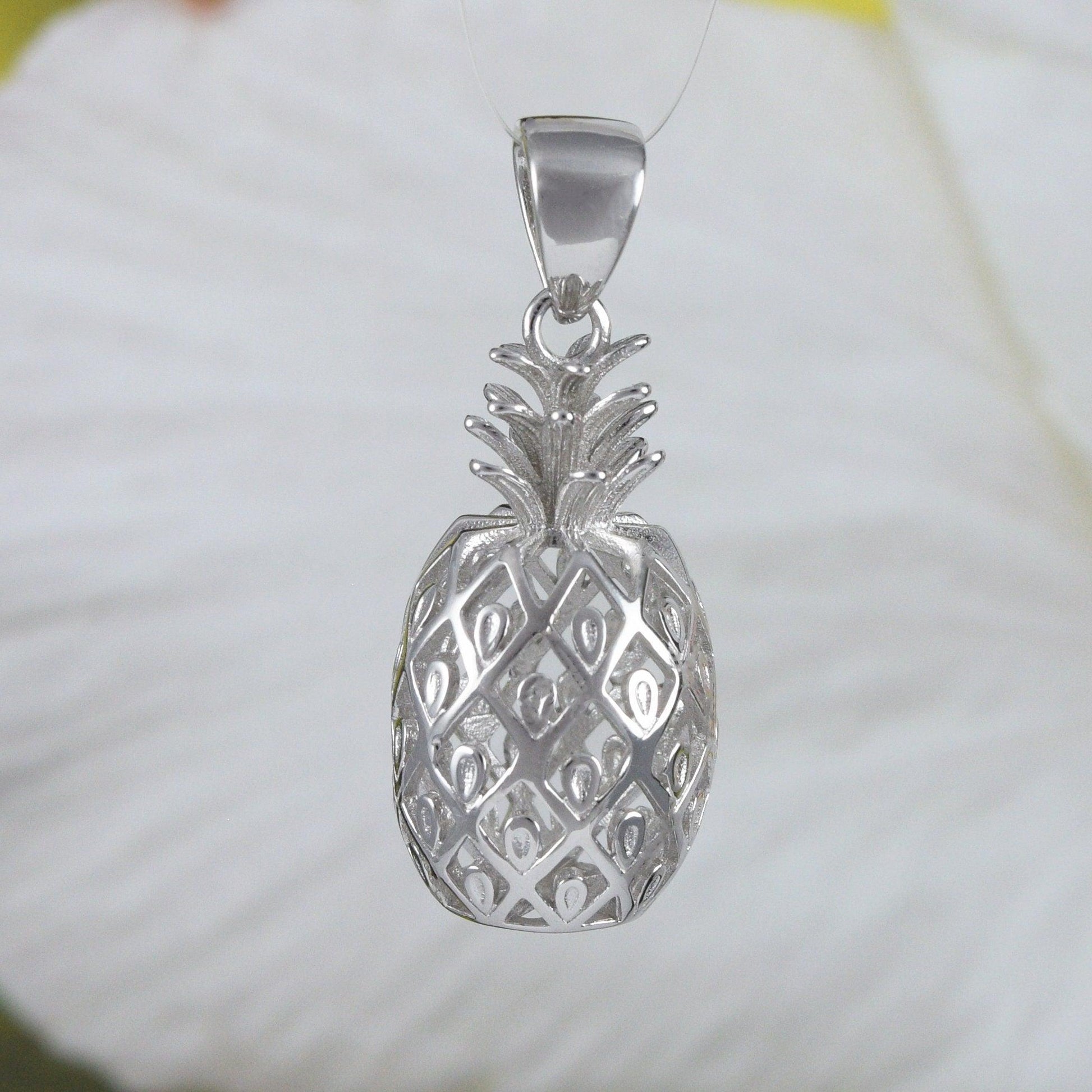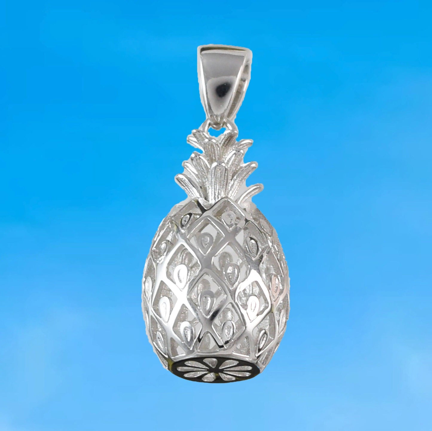 Beautiful Hawaiian Large 3D Pineapple Necklace, Sterling Silver 3D Pineapple Pendant, N6131 Birthday Mother Wife Mom Gift, Statement PC