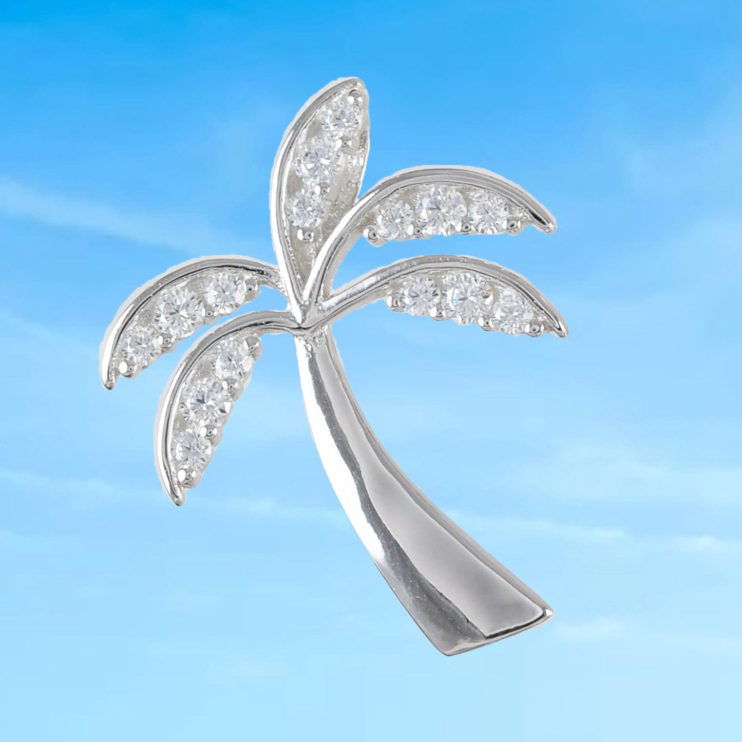 Beautiful Hawaiian Large Palm Tree Necklace, Sterling Silver Palm Tree CZ Pendant, N6010 Birthday Wife Mom Mother Gift, Island Jewelry