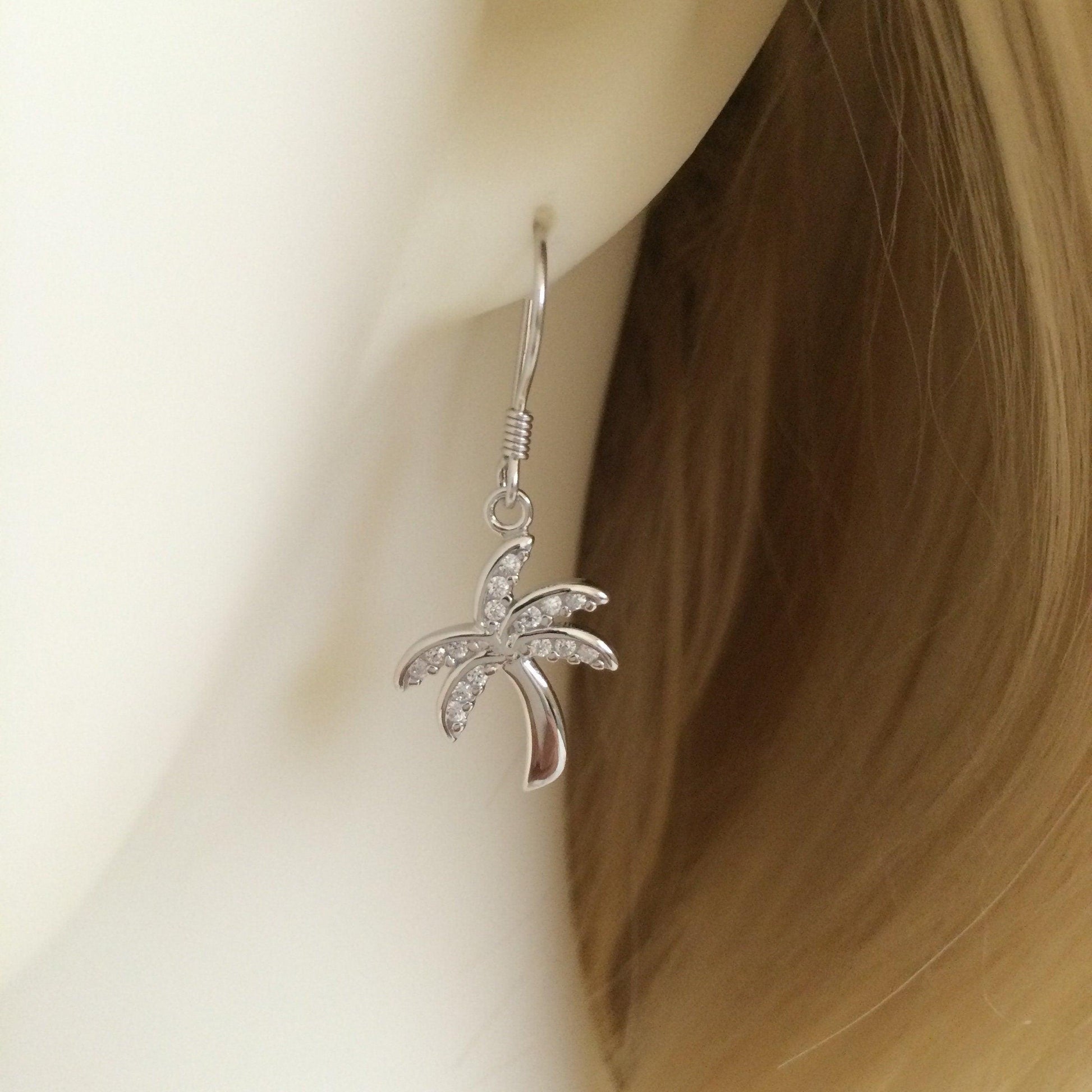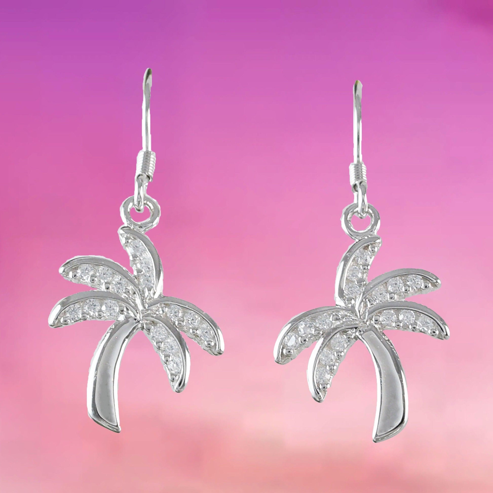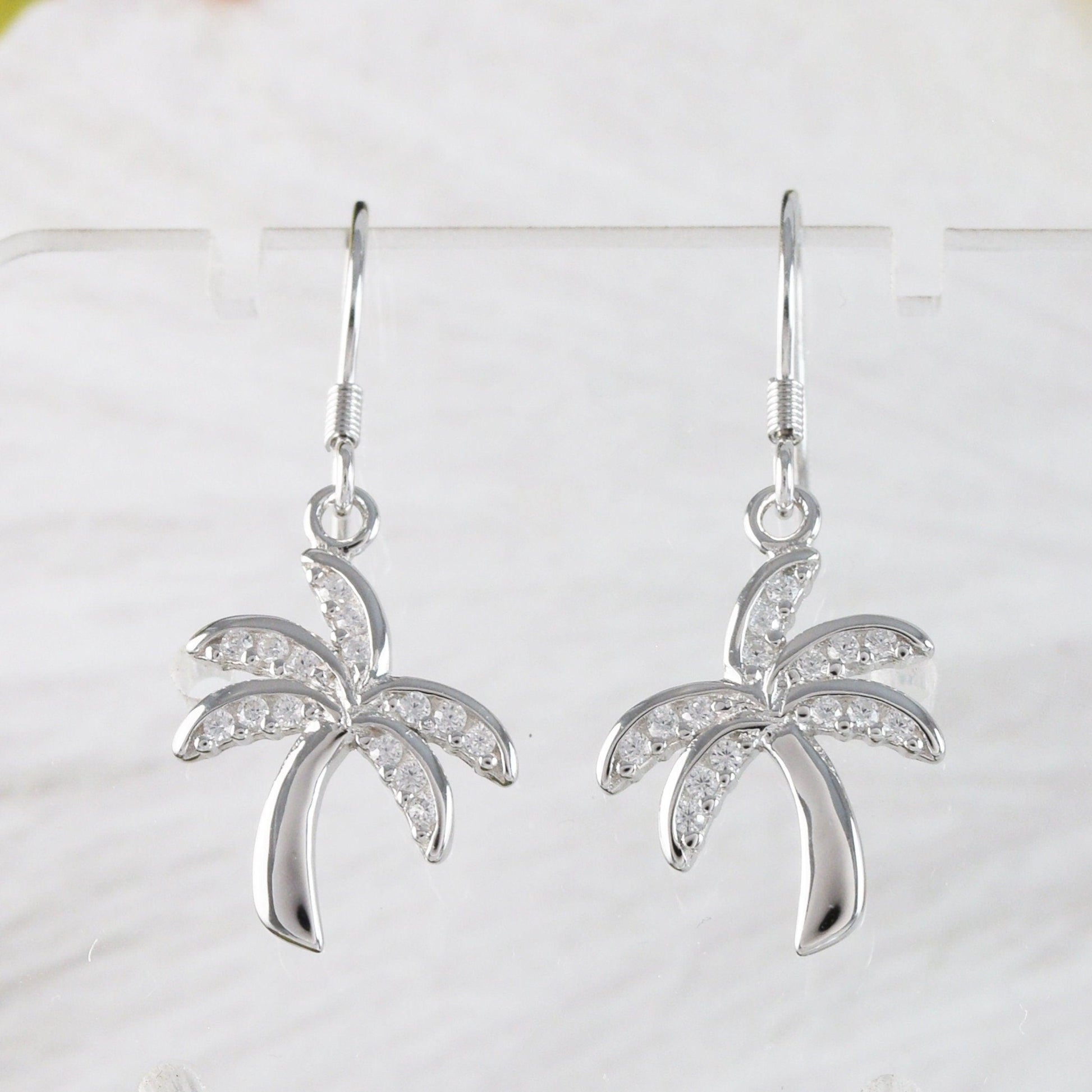 Beautiful Hawaiian Palm Tree Earring, Sterling Silver Palm Tree CZ Dangle Earring, E4022A Birthday Mom Mother Gift, Island Jewelry