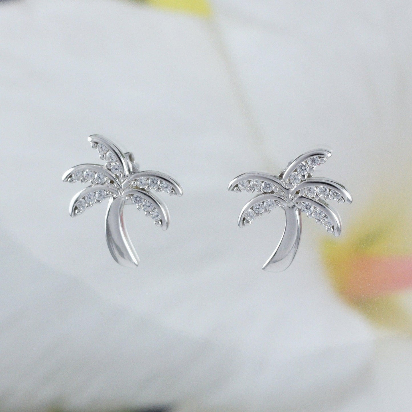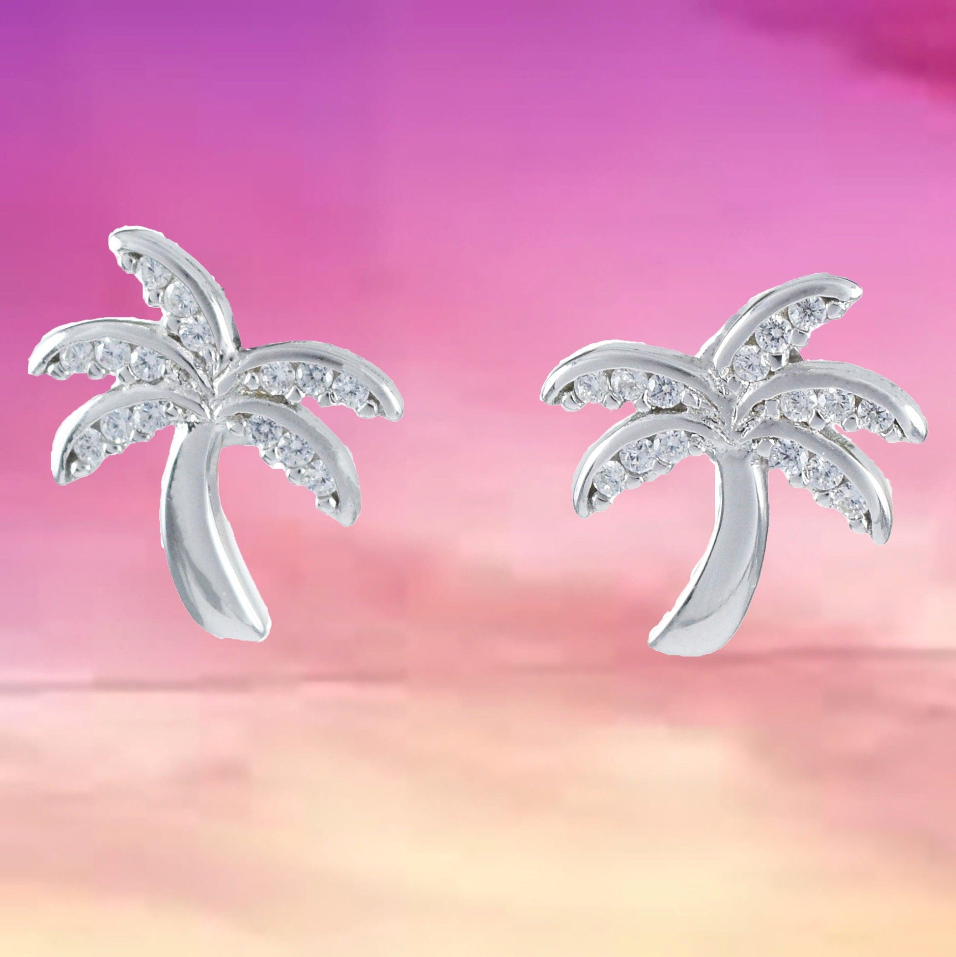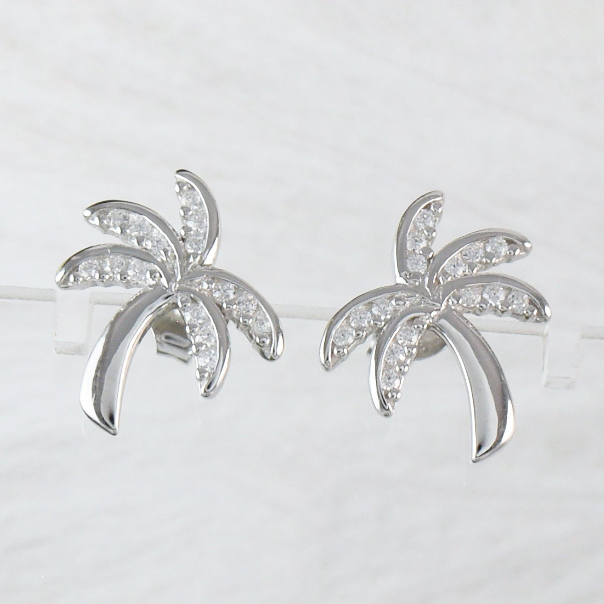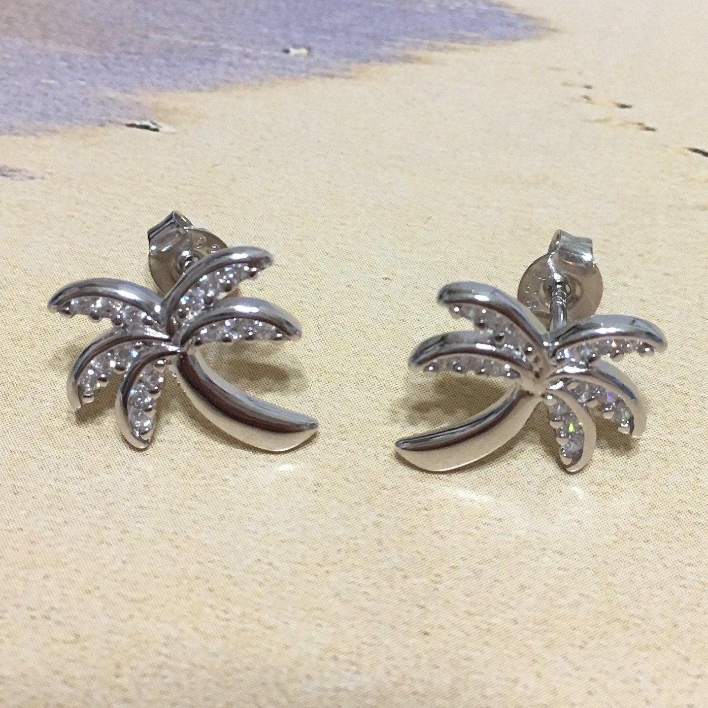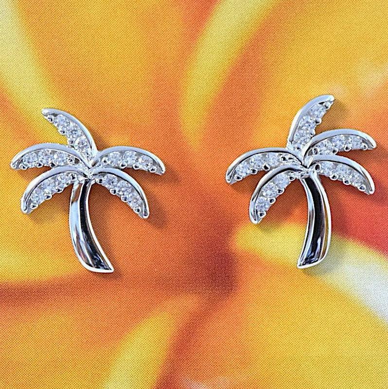 Beautiful Hawaiian Palm Tree Earring, Sterling Silver Palm Tree CZ Stud Earring, E4021 Birthday Mom Mother Gift, Island Jewelry