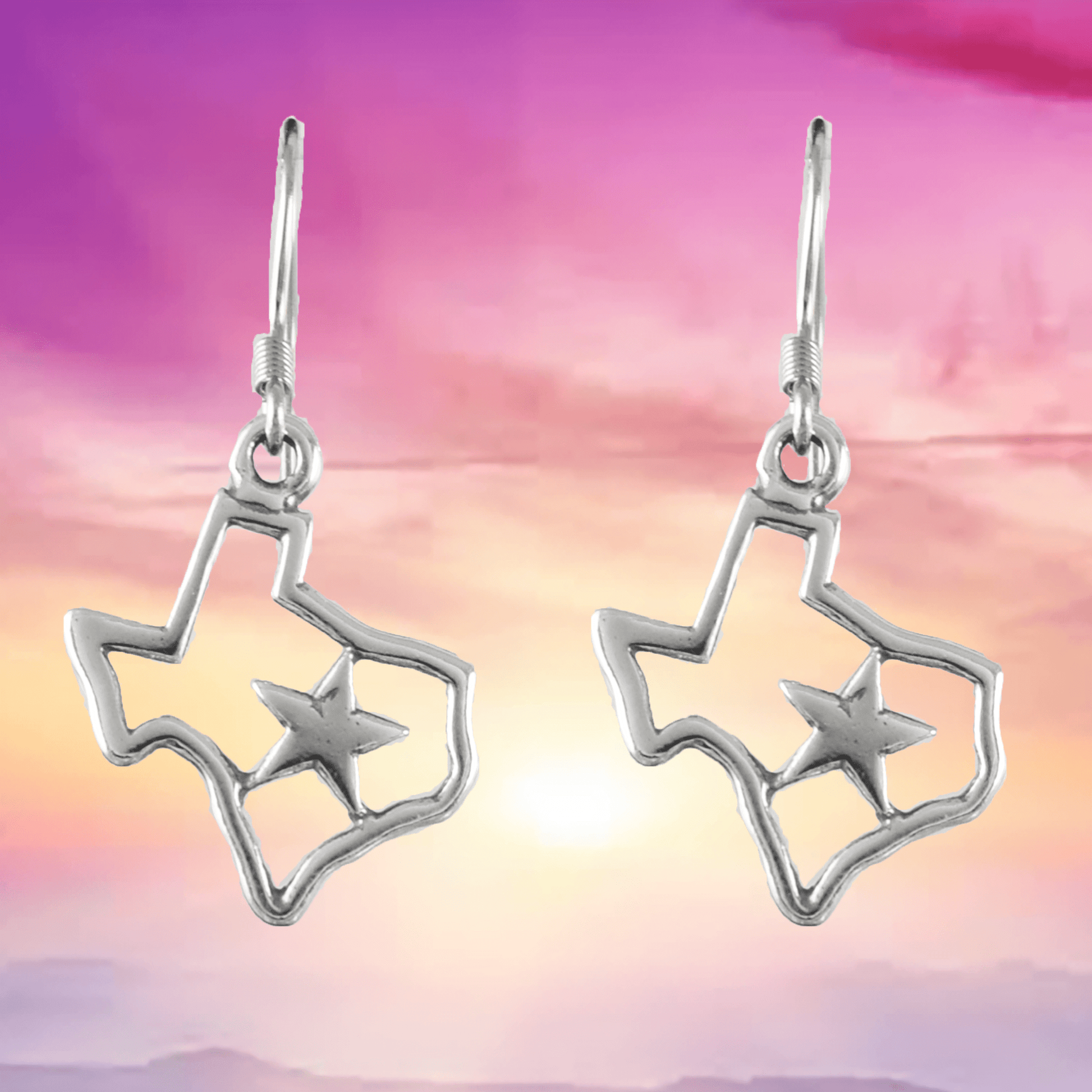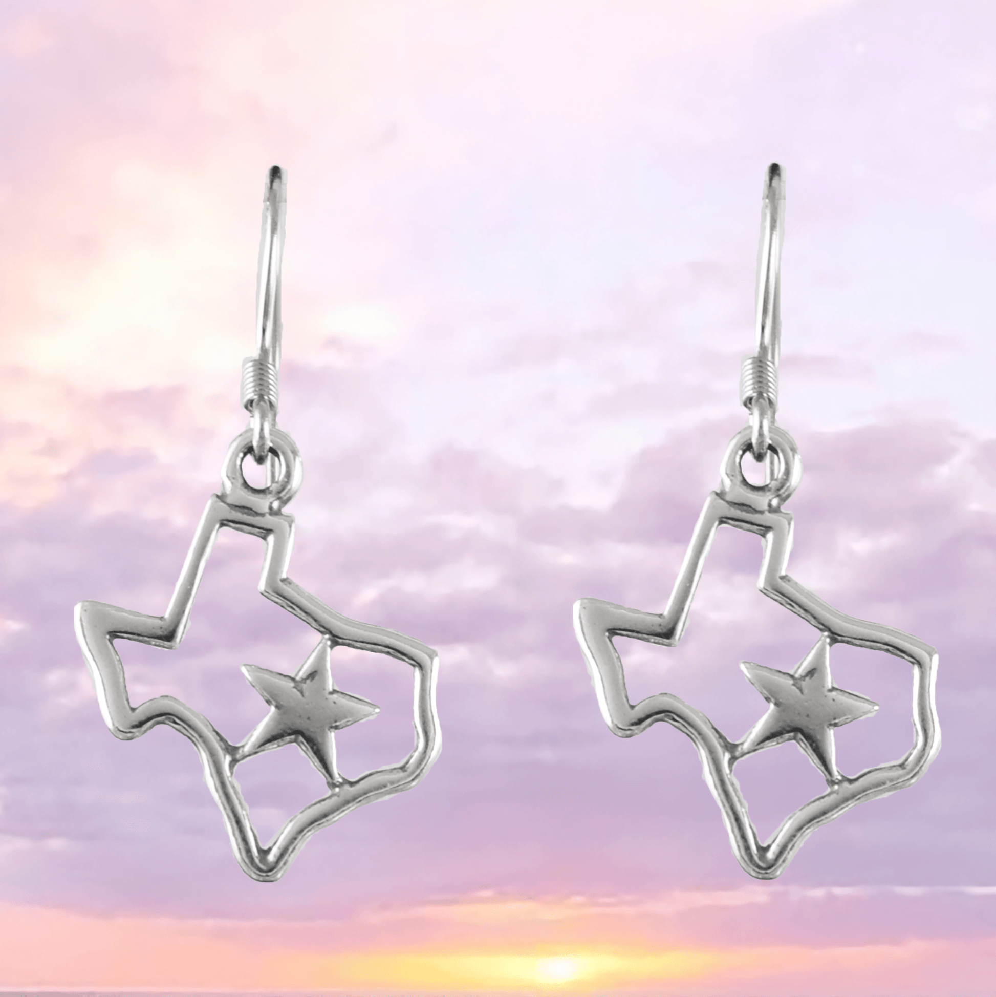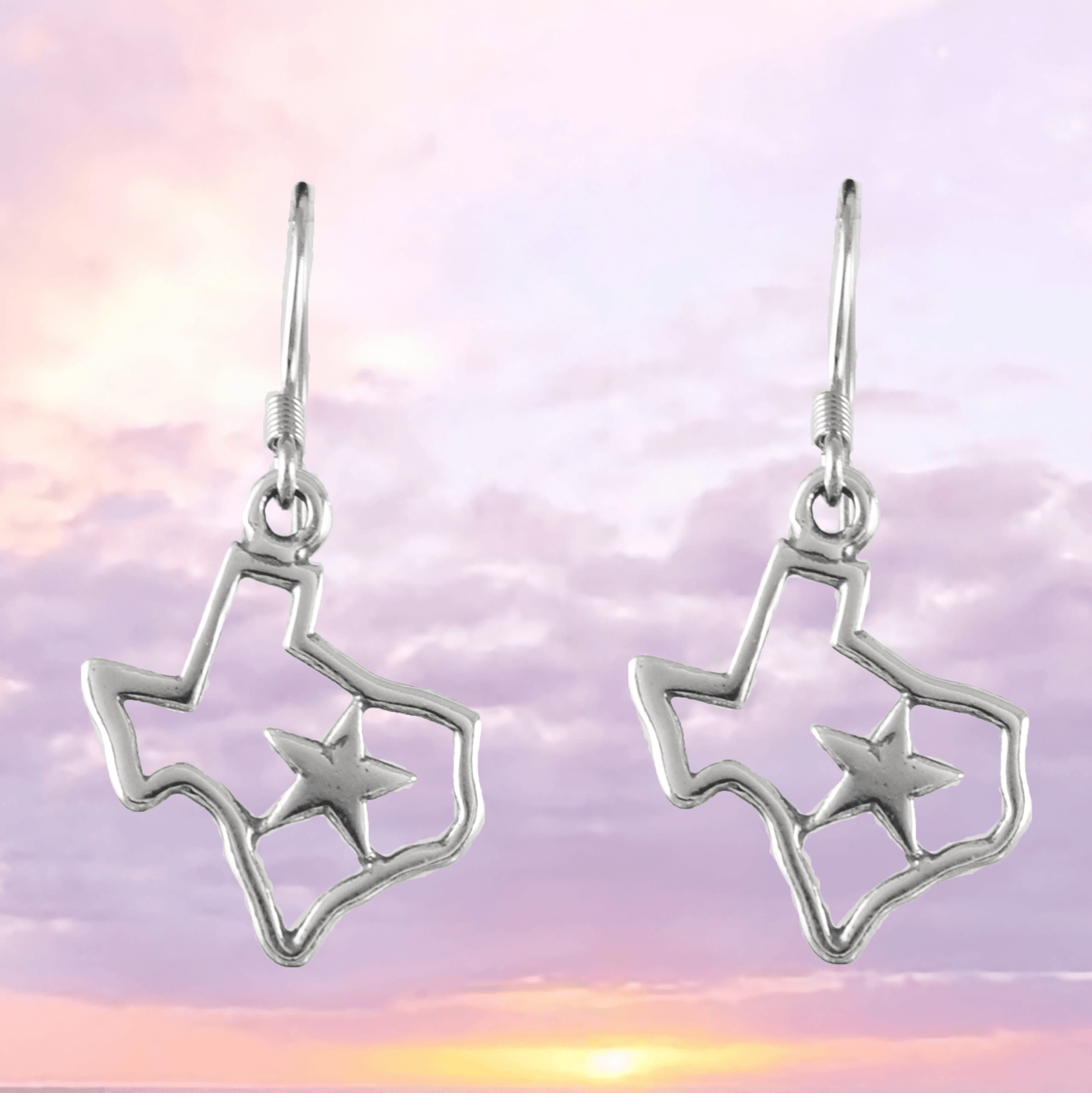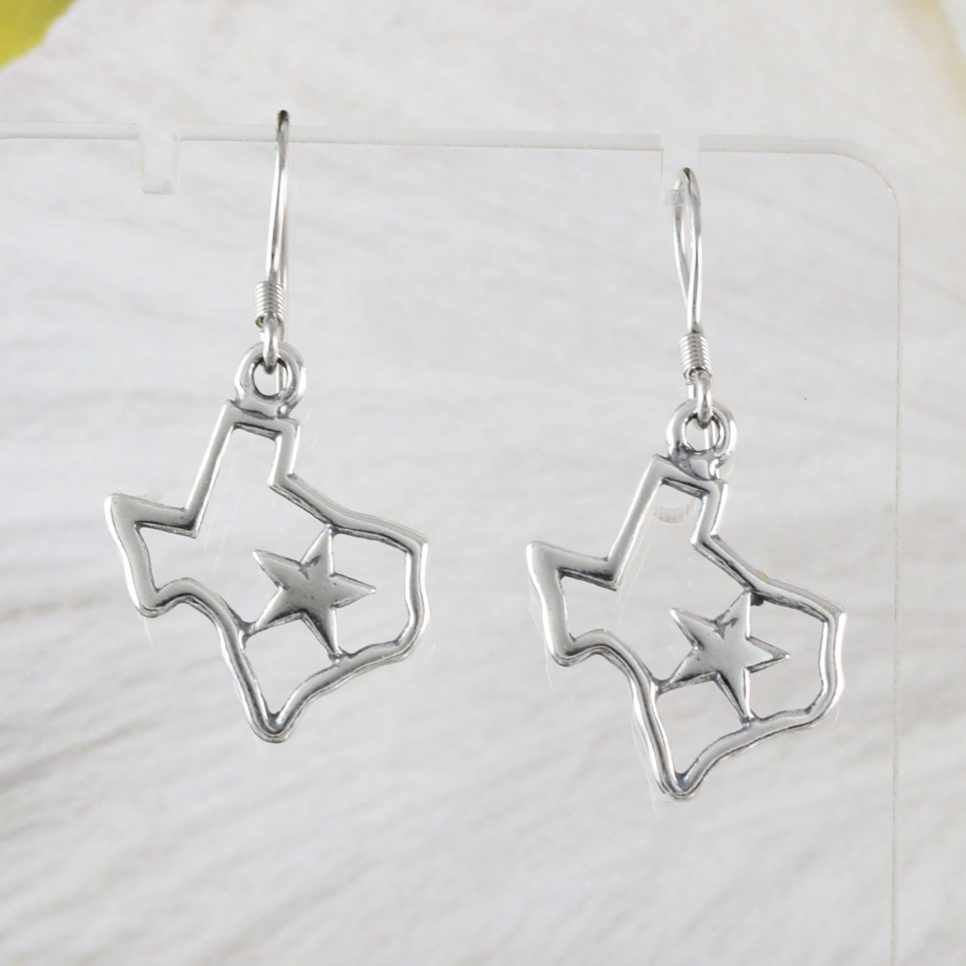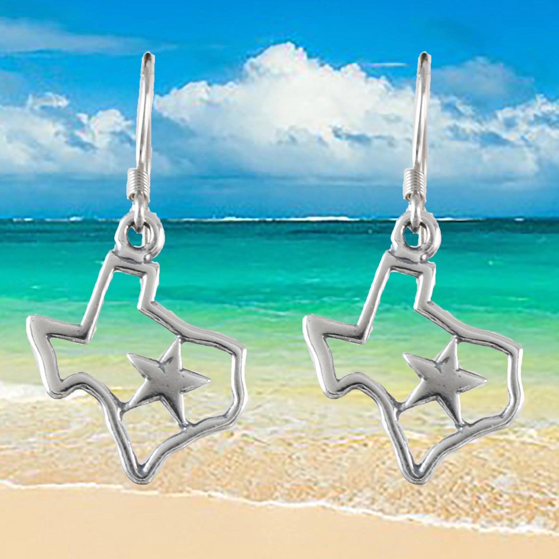 Beautiful Texas Star Earring, Sterling Silver Map of Texas Dangle Earring, E9458 Birthday Wife Mom Mother Gift, Texan Jewelry