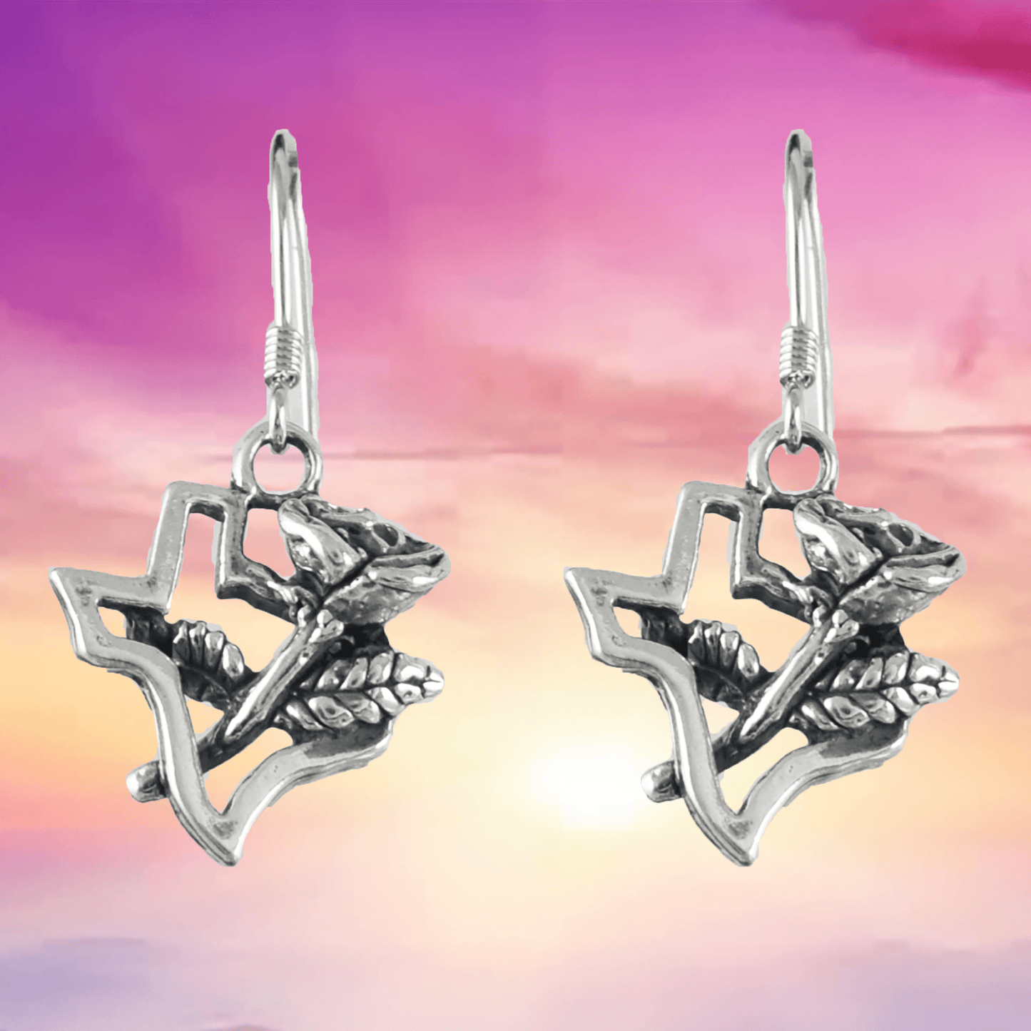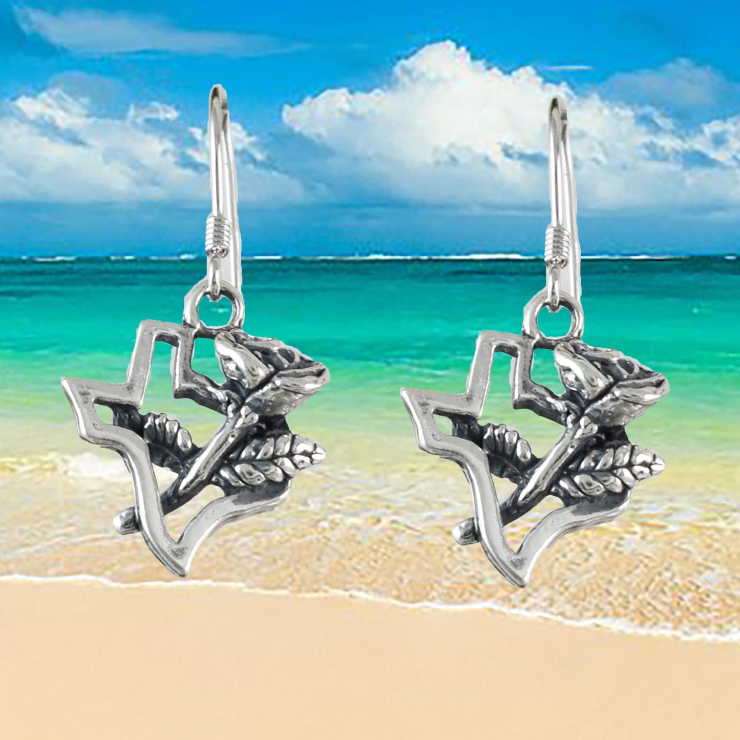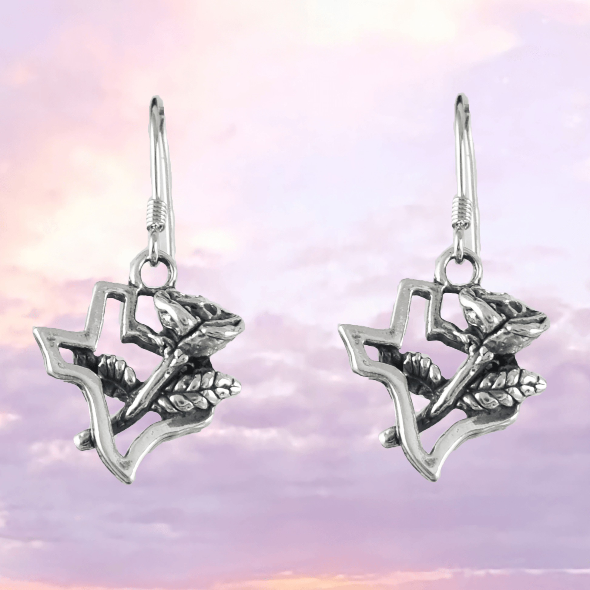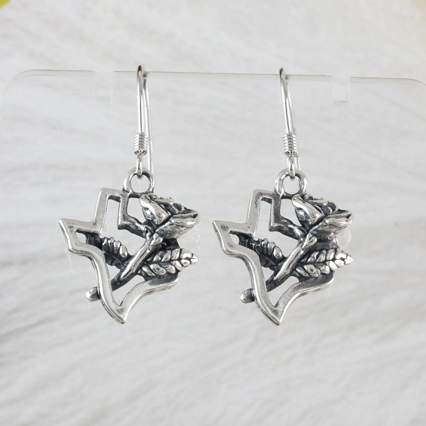 Beautiful Texas Yellow Rose Map Earring, Sterling Silver Texas Map Dangle Earring, E9461 Birthday Wife Mom Mother Gift, Texan Jewelry