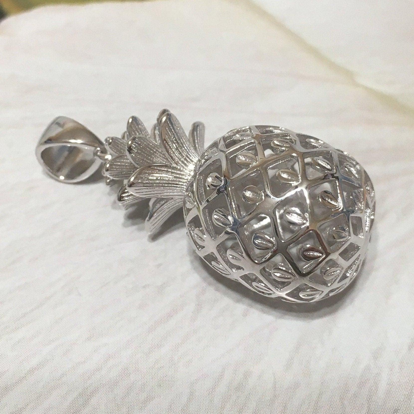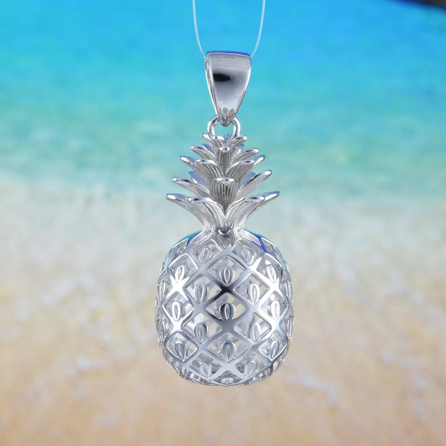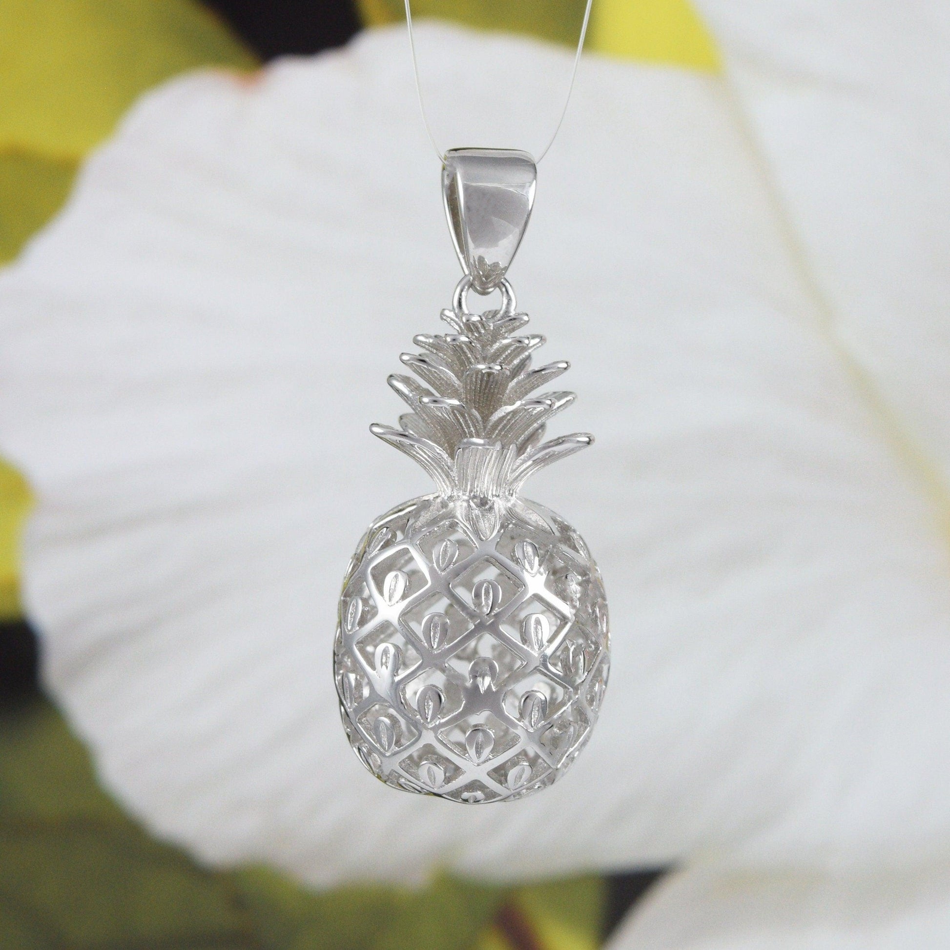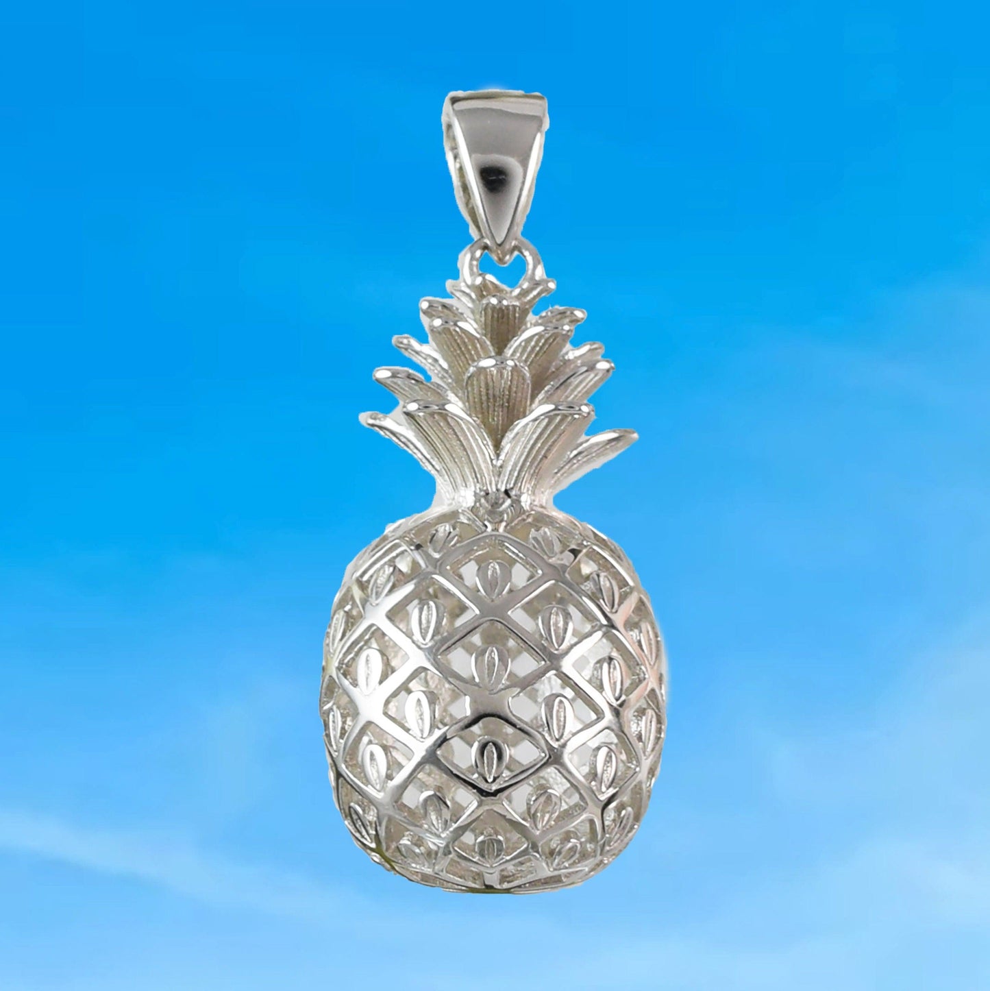 Gorgeous Hawaiian X-Large 3D Pineapple Necklace, Sterling Silver Pineapple Pendant, N6132 Birthday Wife Mom Mother Gift, Statement PC