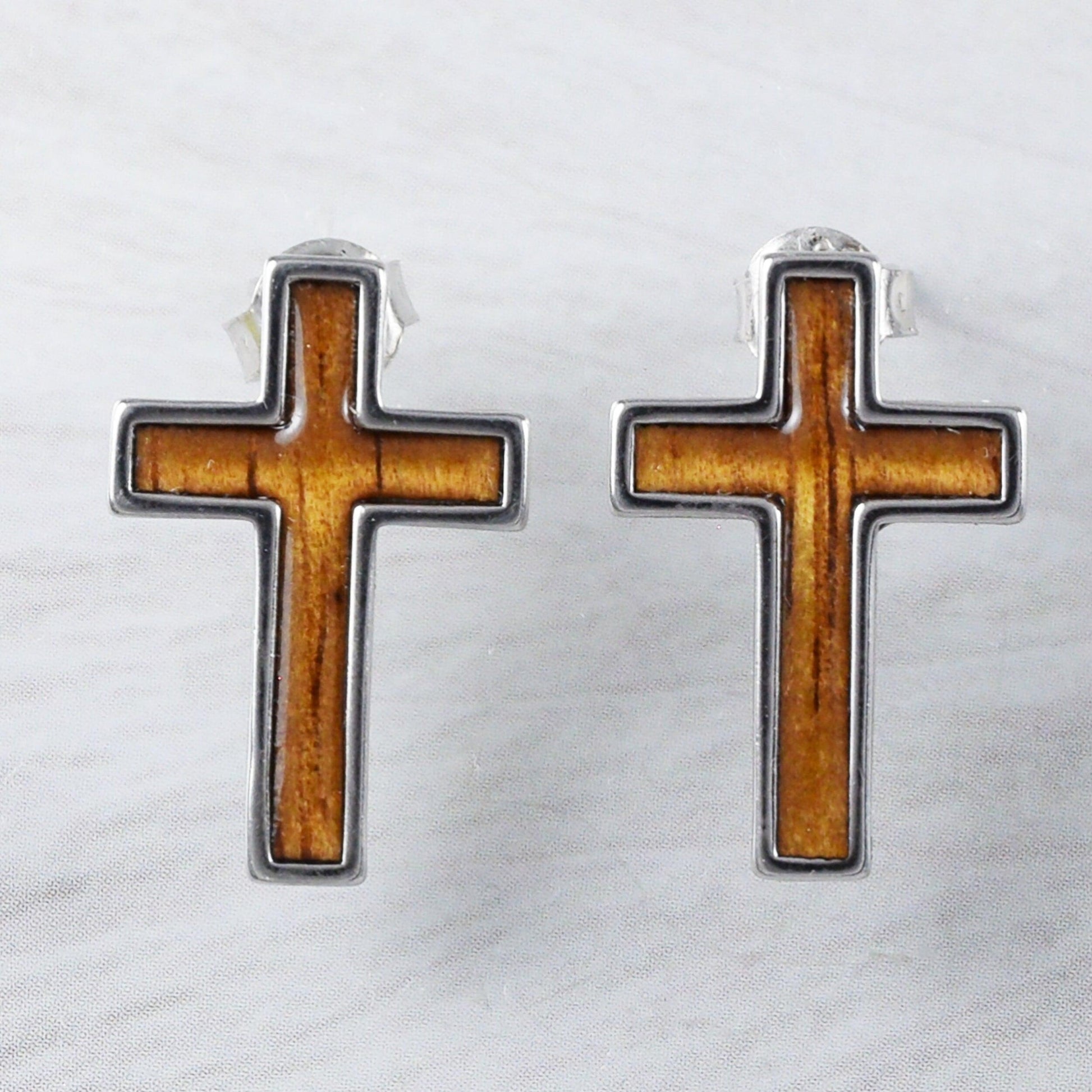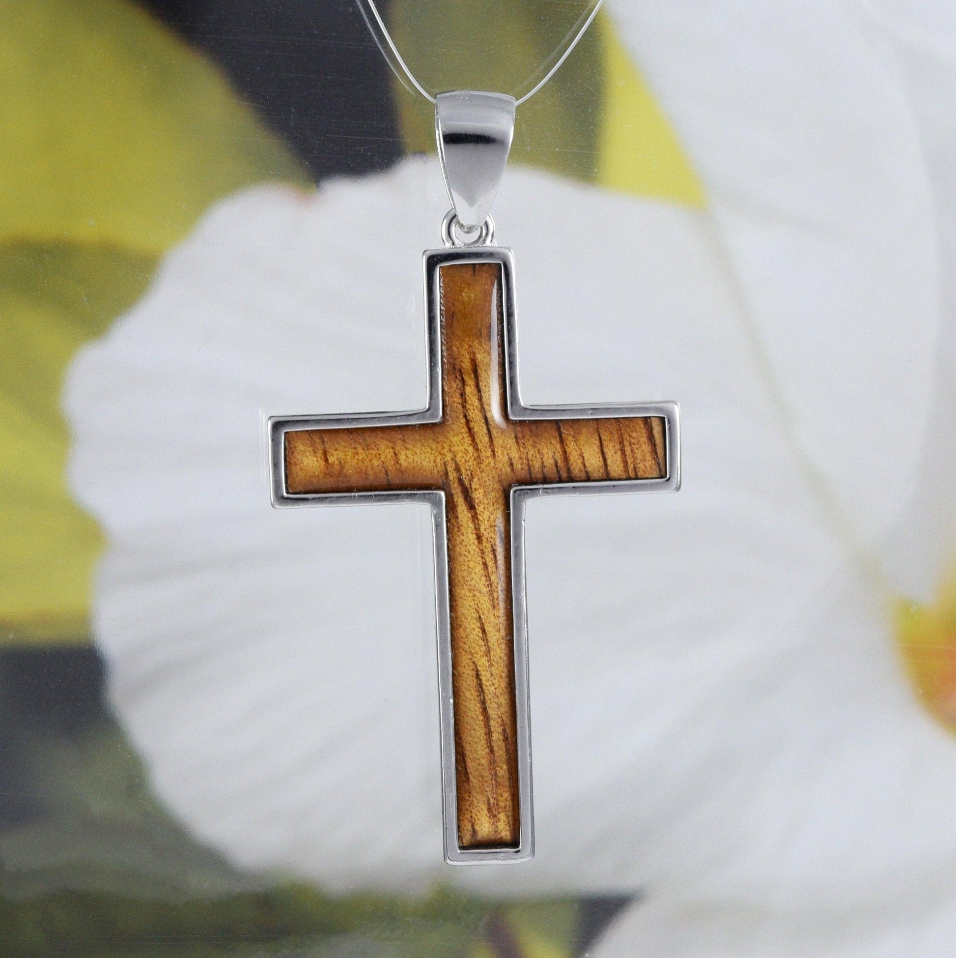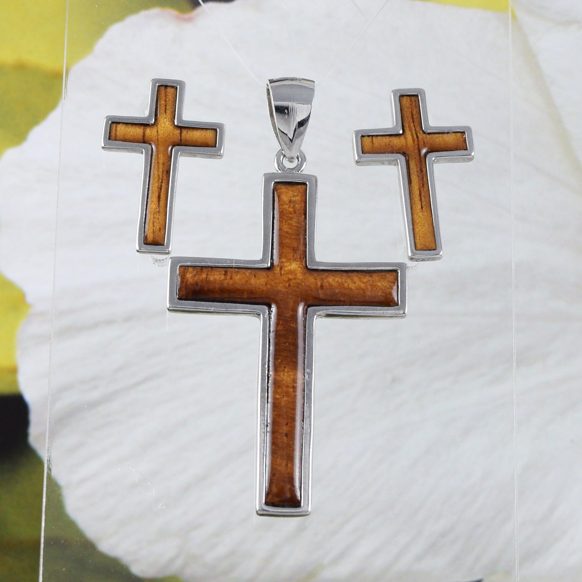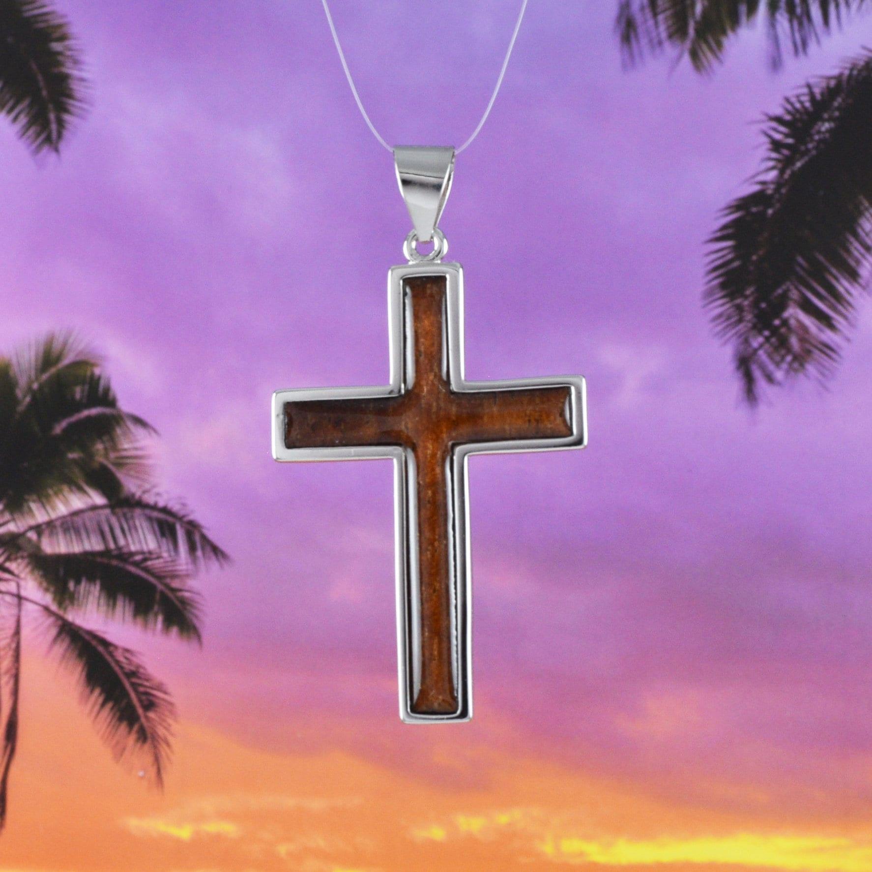 Gorgeous Hawaiian X-Large Genuine Koa Wood Cross Earring and Necklace, Sterling Silver Cross Pendant, N8517S Birthday Mother Gift