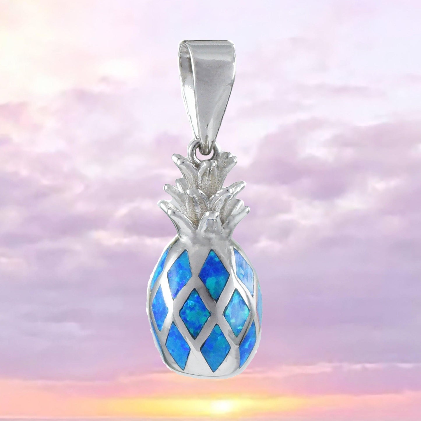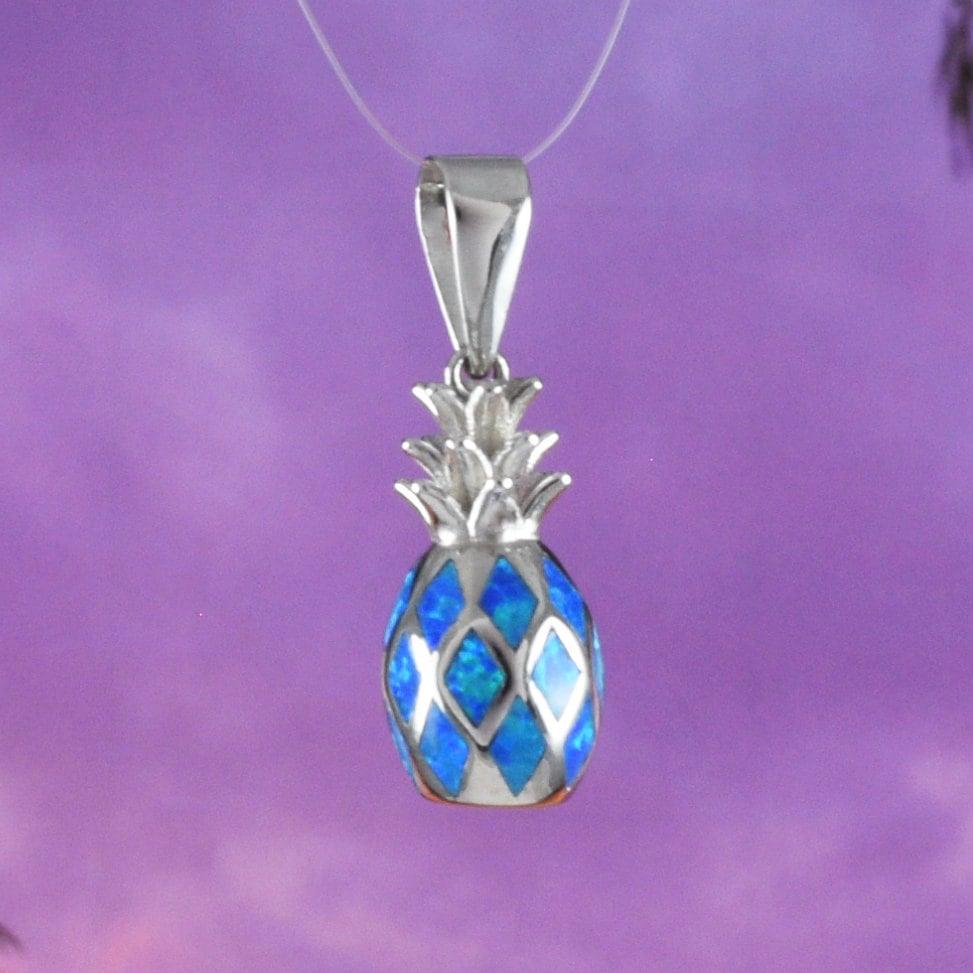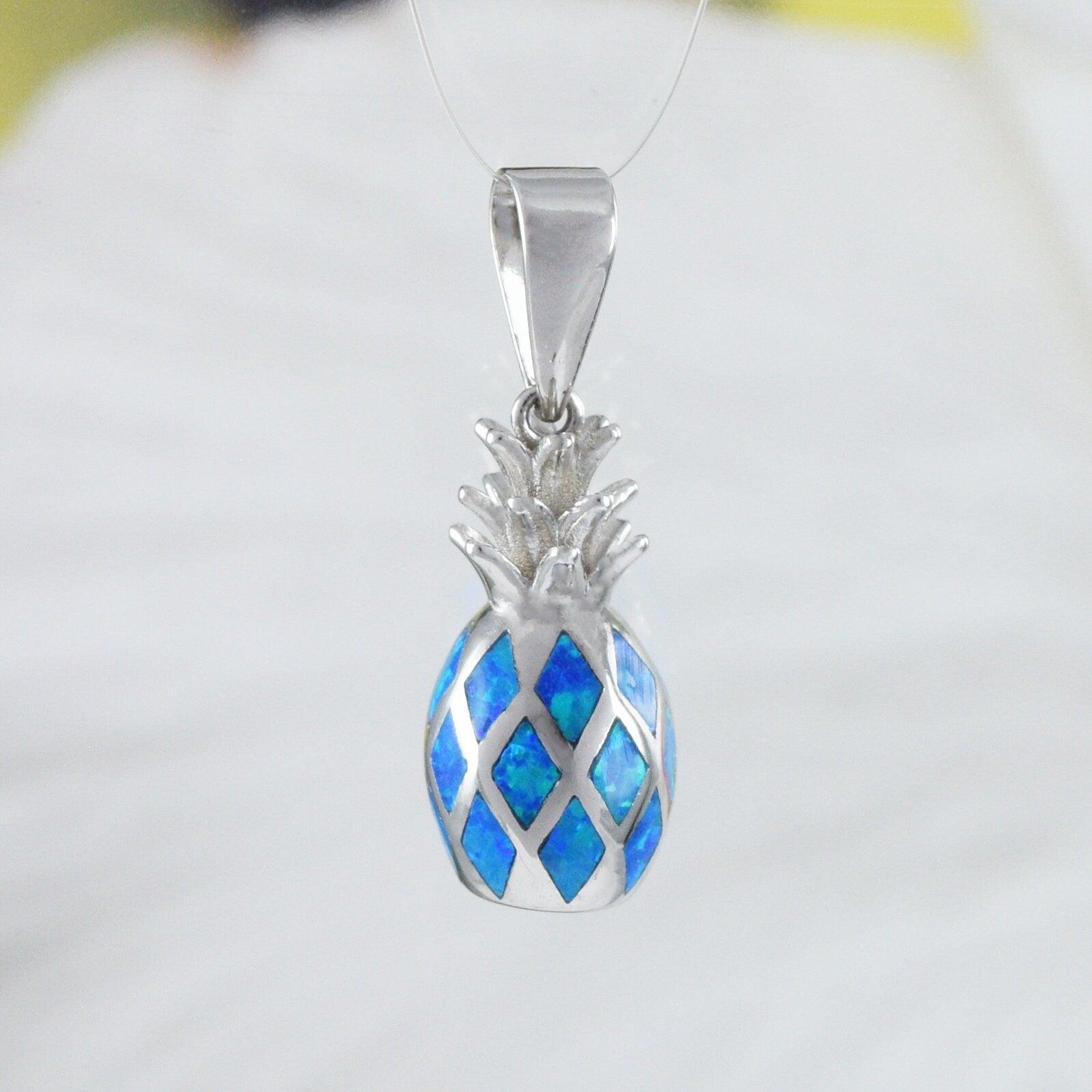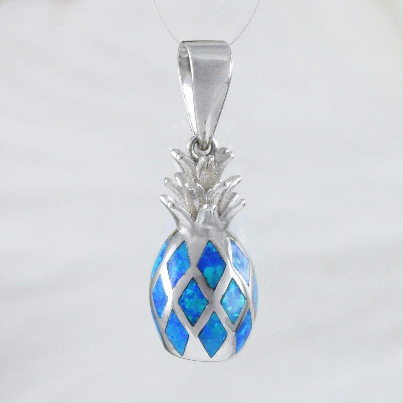 Unique Beautiful Hawaiian 3D Blue Opal Pineapple Necklace, Sterling Silver Blue Opal Pineapple Pendant, N8386 Birthday Mom Mother Gift