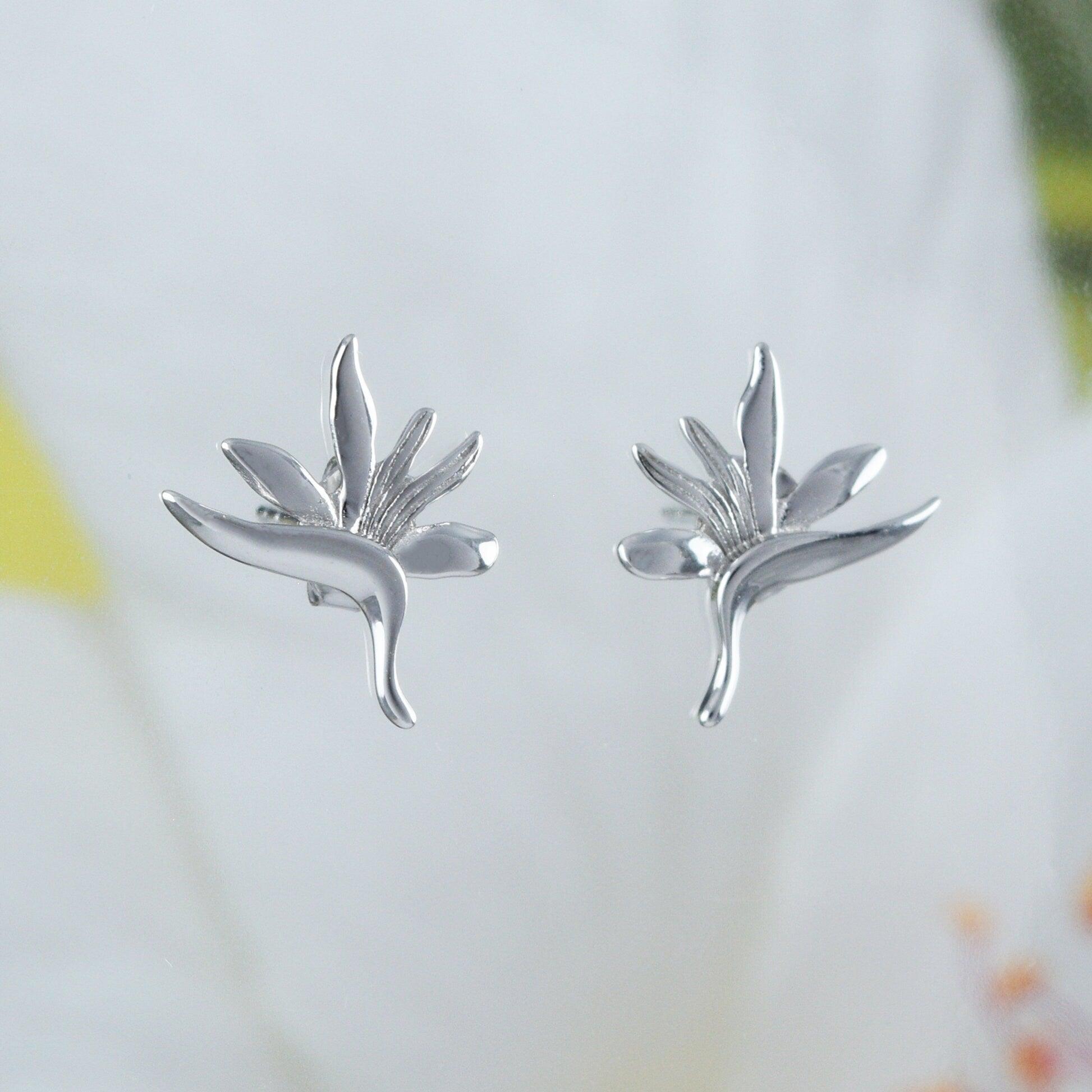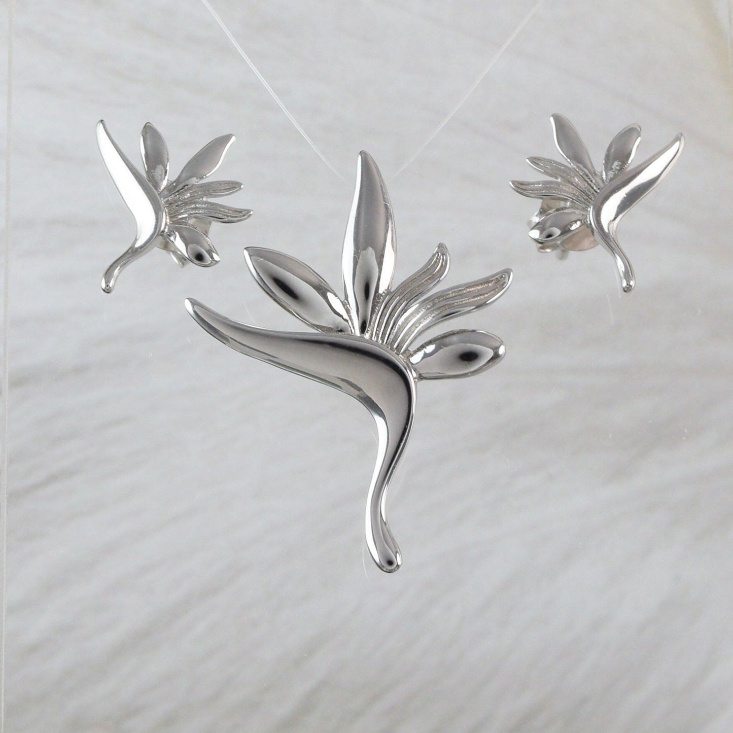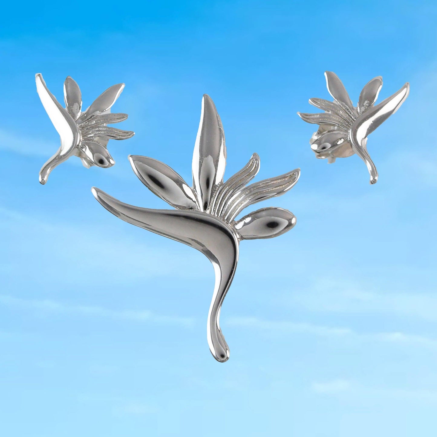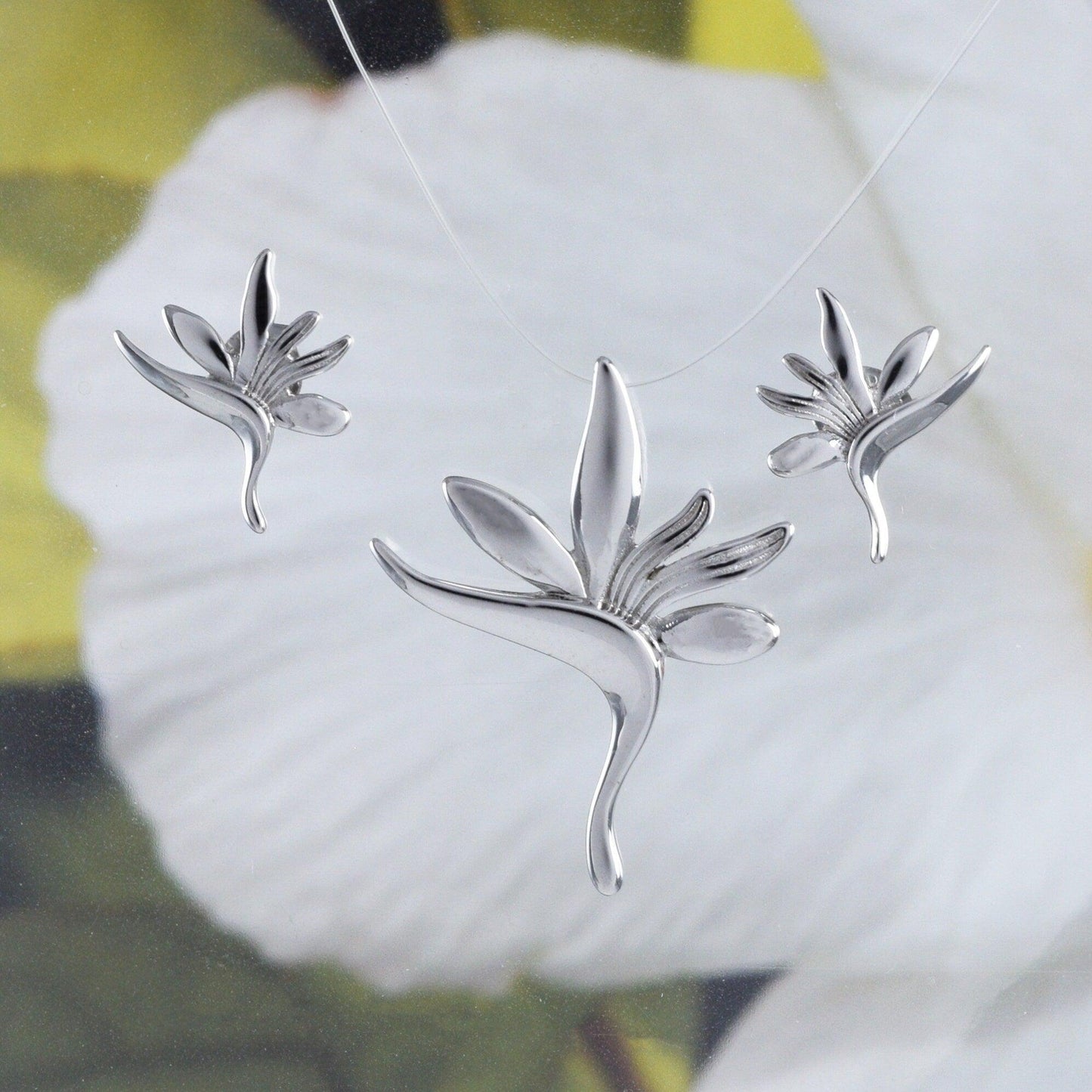 Unique Beautiful Hawaiian Bird of Paradise Necklace and Earring, Sterling Silver Bird of Paradise Pendant, N6113S Birthday Mom Gift