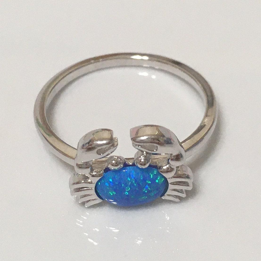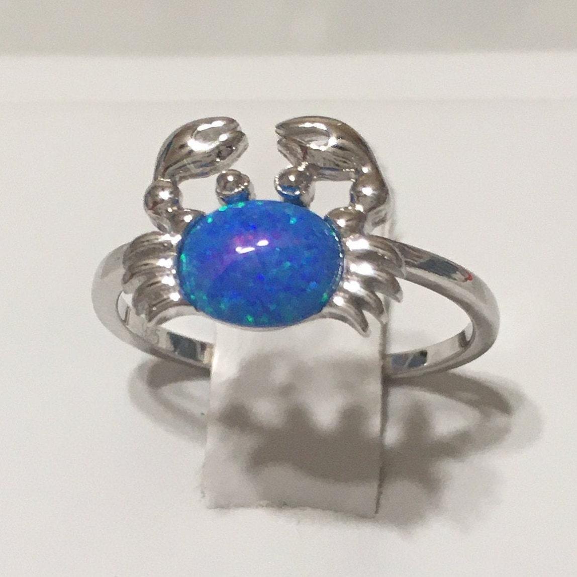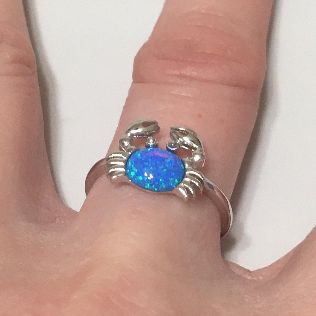 Unique Beautiful Hawaiian Blue Opal Crab Ring, Sterling Silver Blue Opal Crab Ring, Island Jewelry, R2364 Mother Birthday Mom Wife Gift
