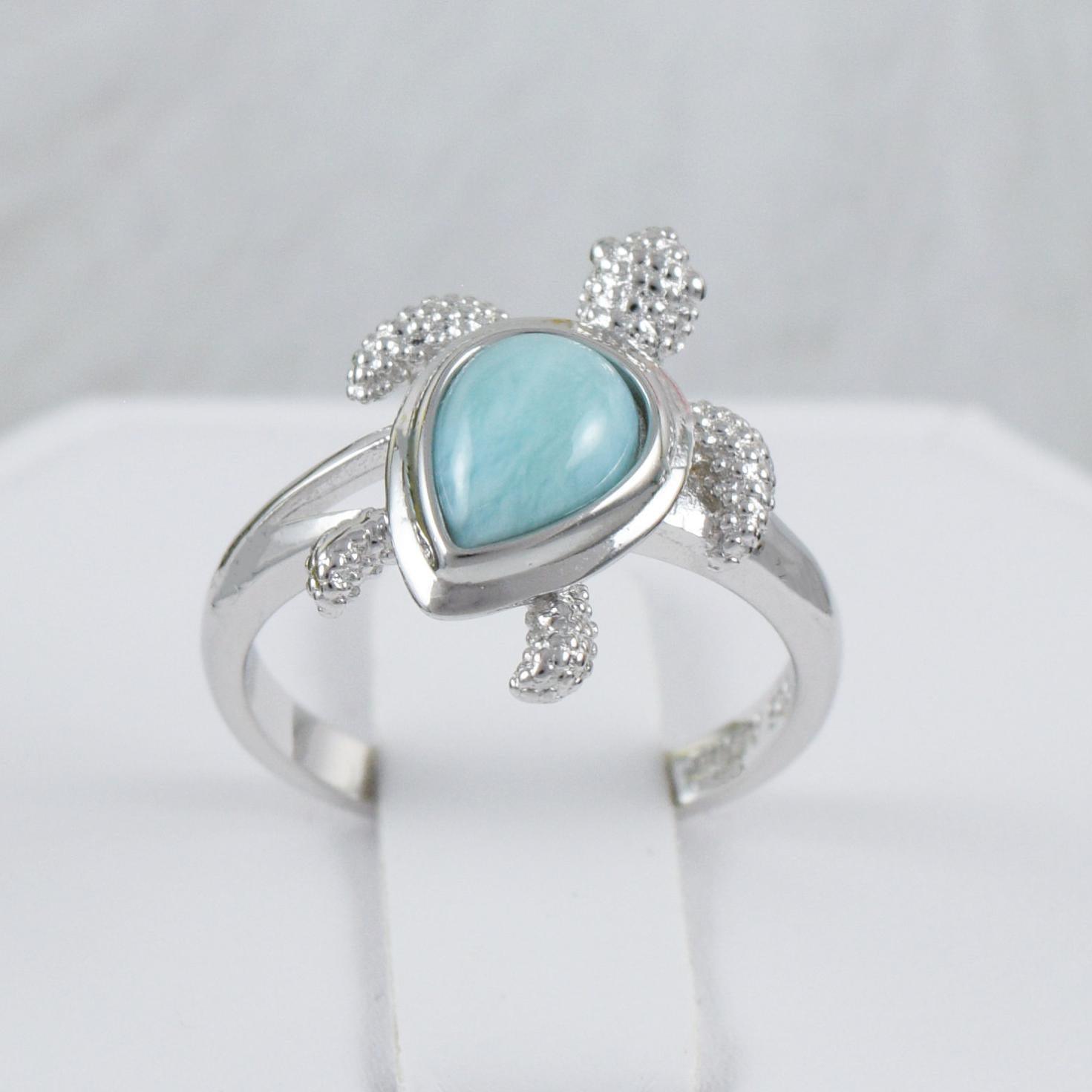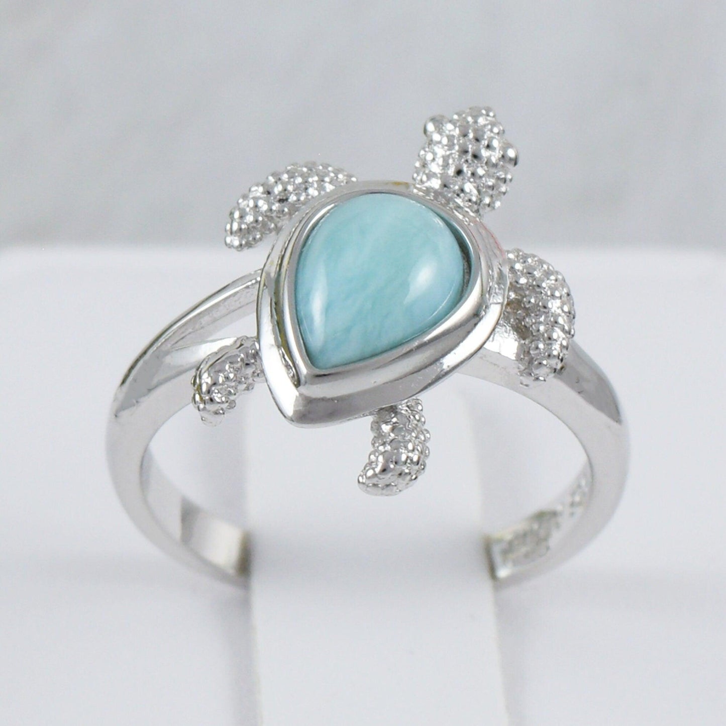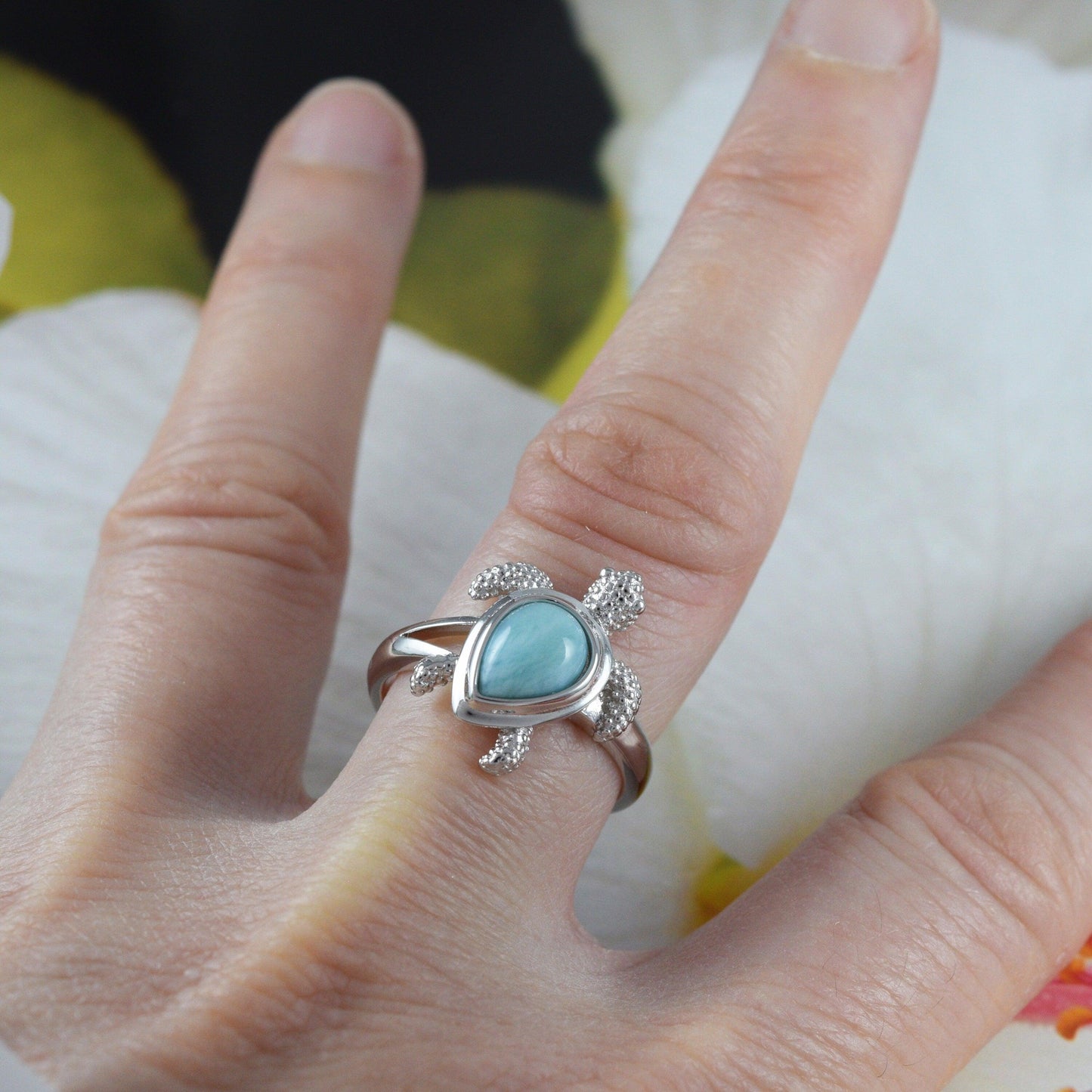 Unique Gorgeous Hawaiian Genuine Larimar Sea Turtle Ring, Sterling Silver Natural Larimar Turtle Ring R2385 Birthday Mom Mother Gift
