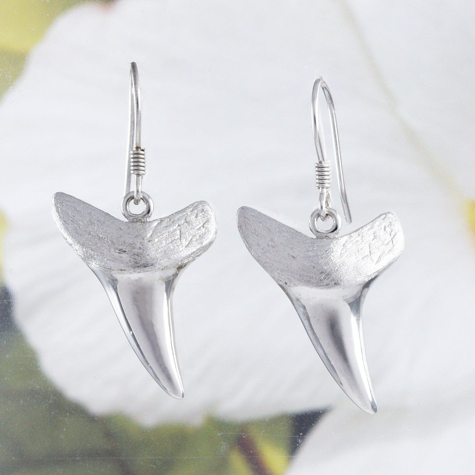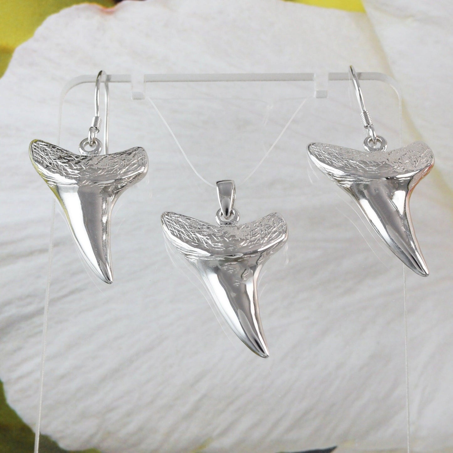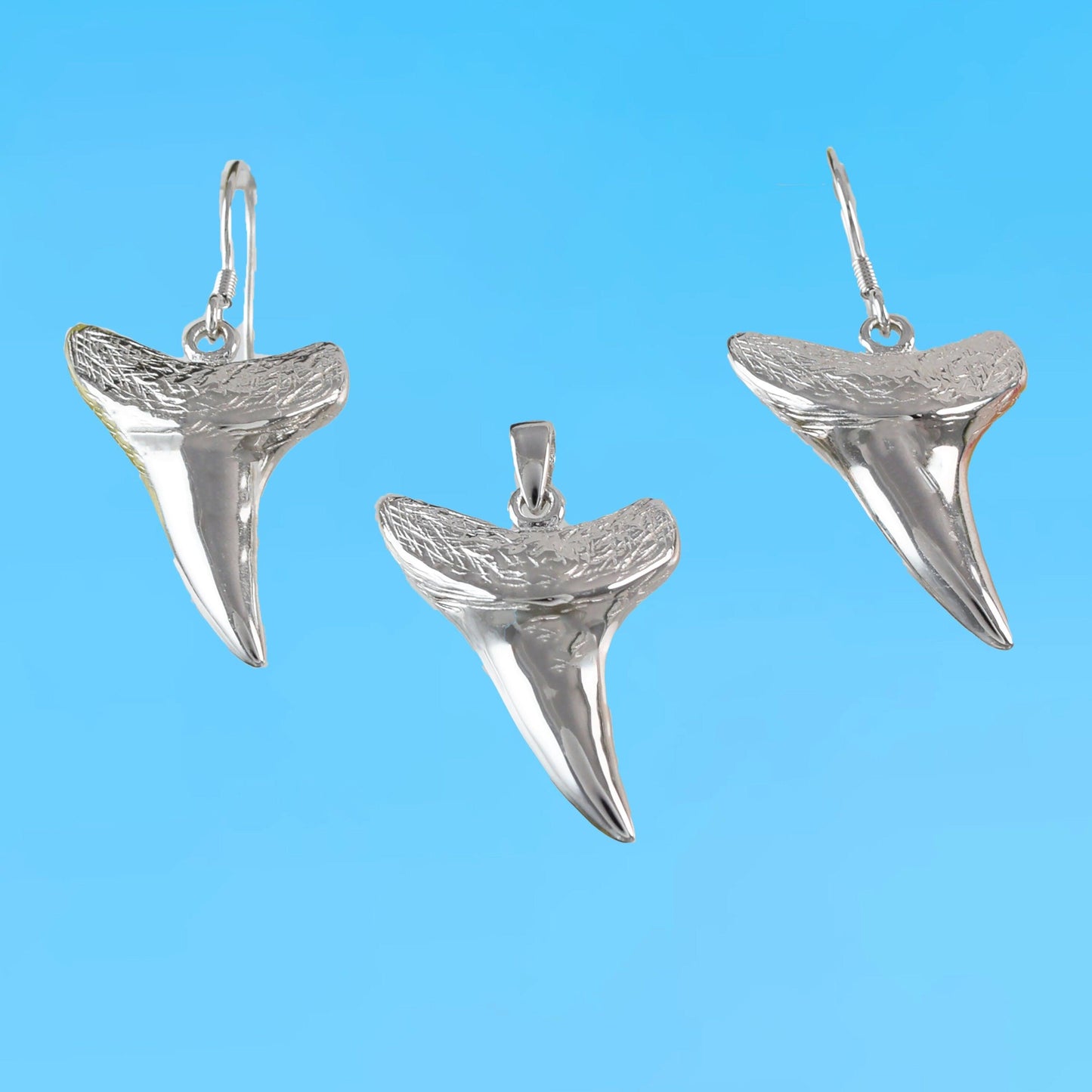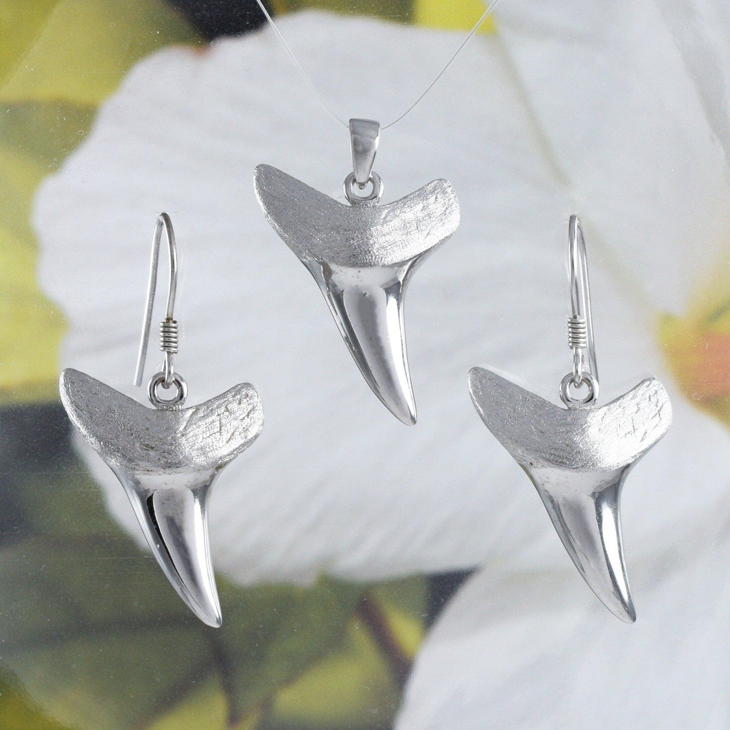 Unique Hawaiian 3D Solid Shark Teeth Necklace and Earring, Sterling Silver Shark Teeth Pendant, N6108S Birthday Mom Gift