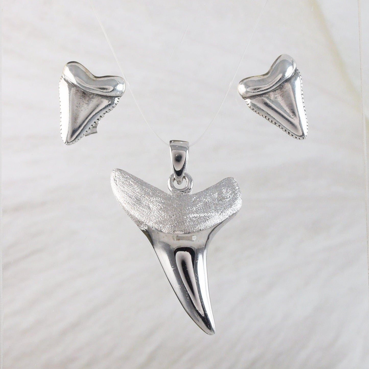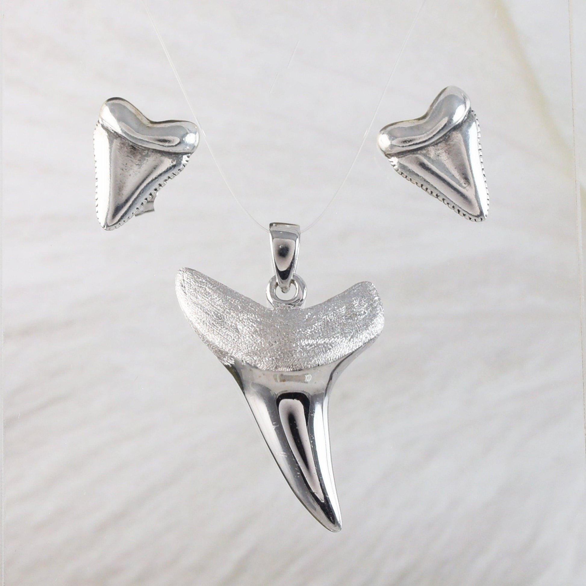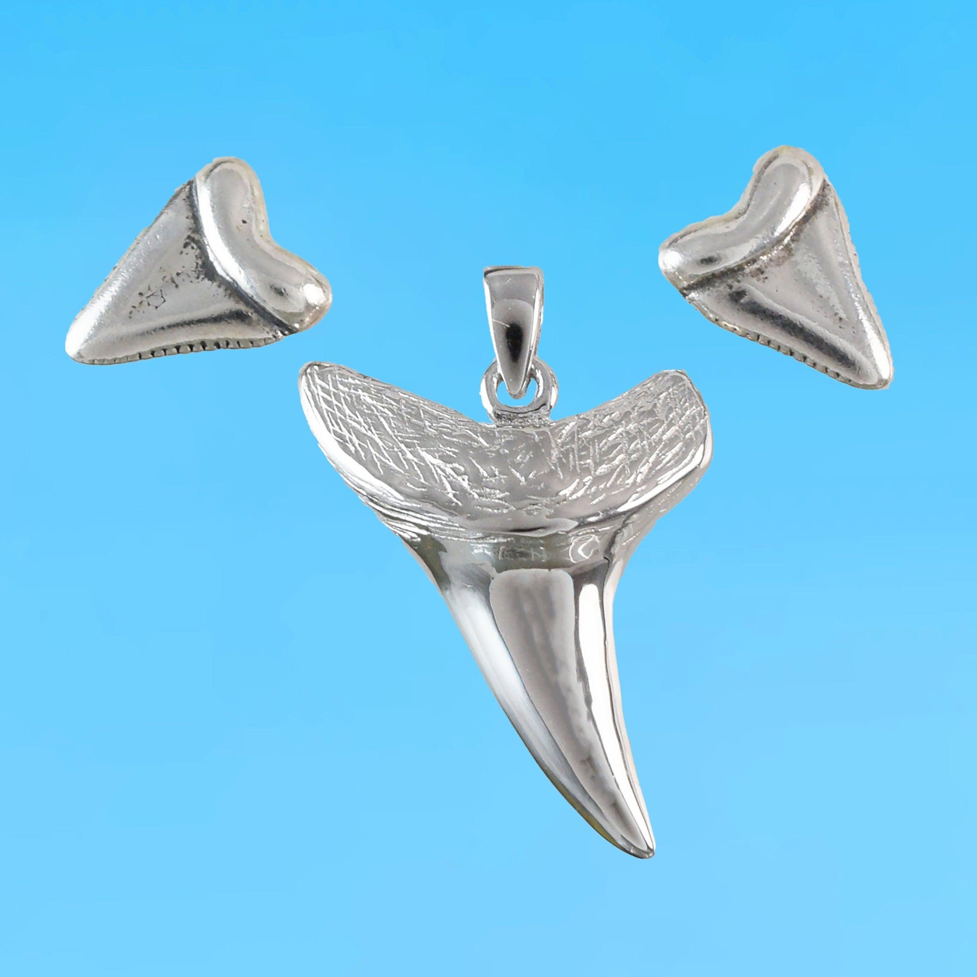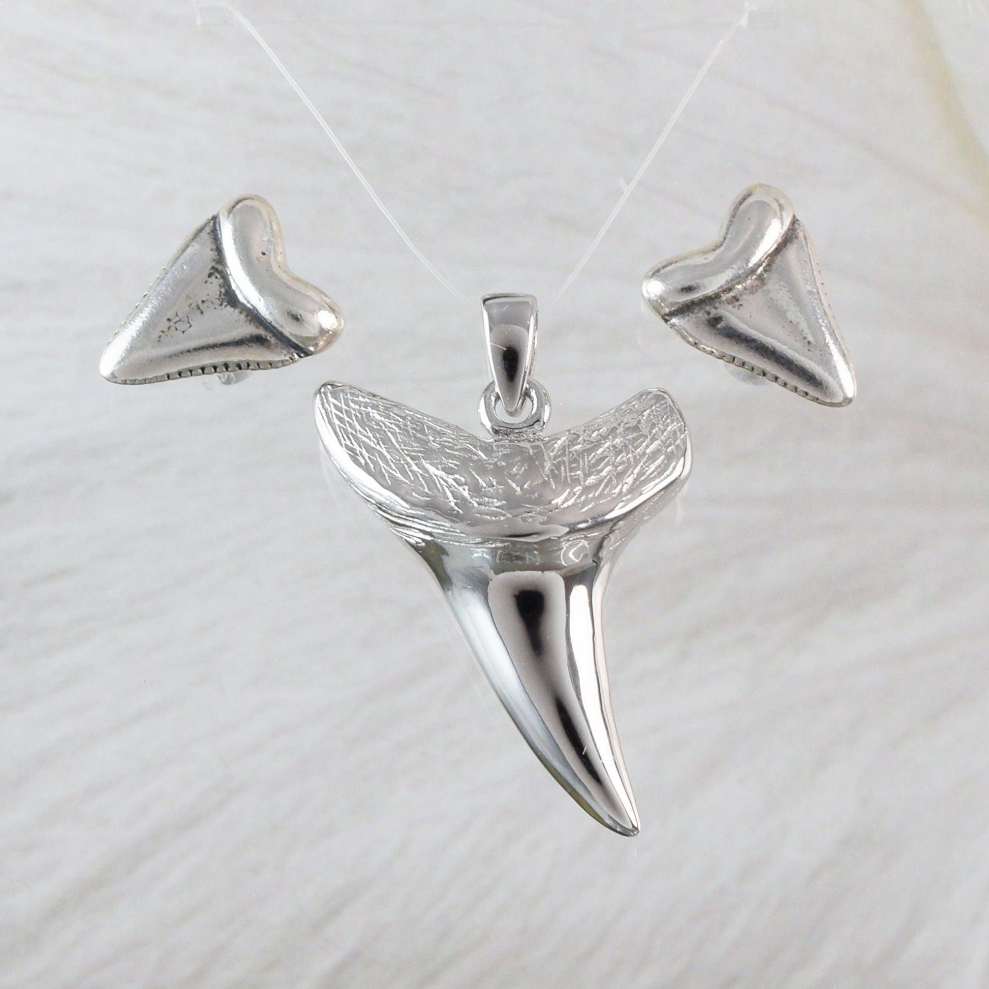 Unique Hawaiian 3D Solid Shark Teeth Necklace and Earring, Sterling Silver Shark Teeth Pendant, N6108S2 Birthday Mom Gift