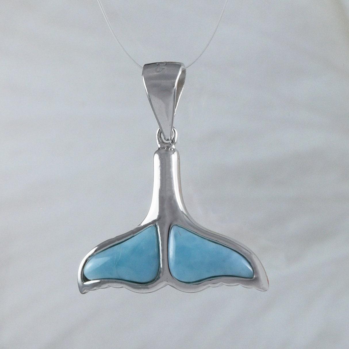 Unique Hawaiian Genuine Larimar Whale Tail Necklace, Sterling Silver Larimar Whale Tail Pendant, N9325 Birthday Mother Wife Mom Gift