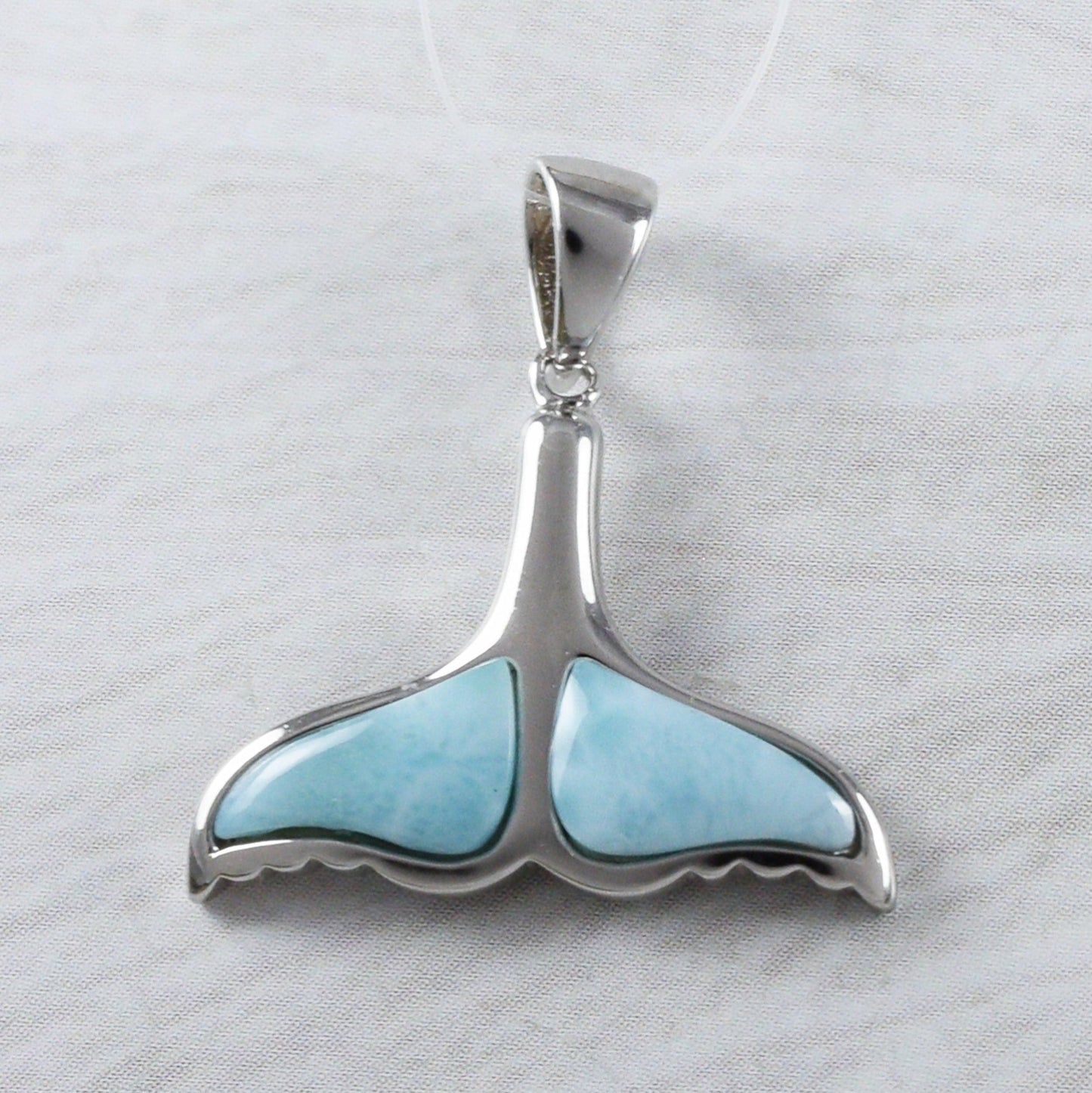 Genuine Larimar Whale Tail Charm Pendant Necklace, Hawaiian Sea Life, Hawaiian necklace, Hawaiian Jewelry, Christmas gift, Birthday gift, Anniversary gift, Valentine Present, Mother’s Day gift