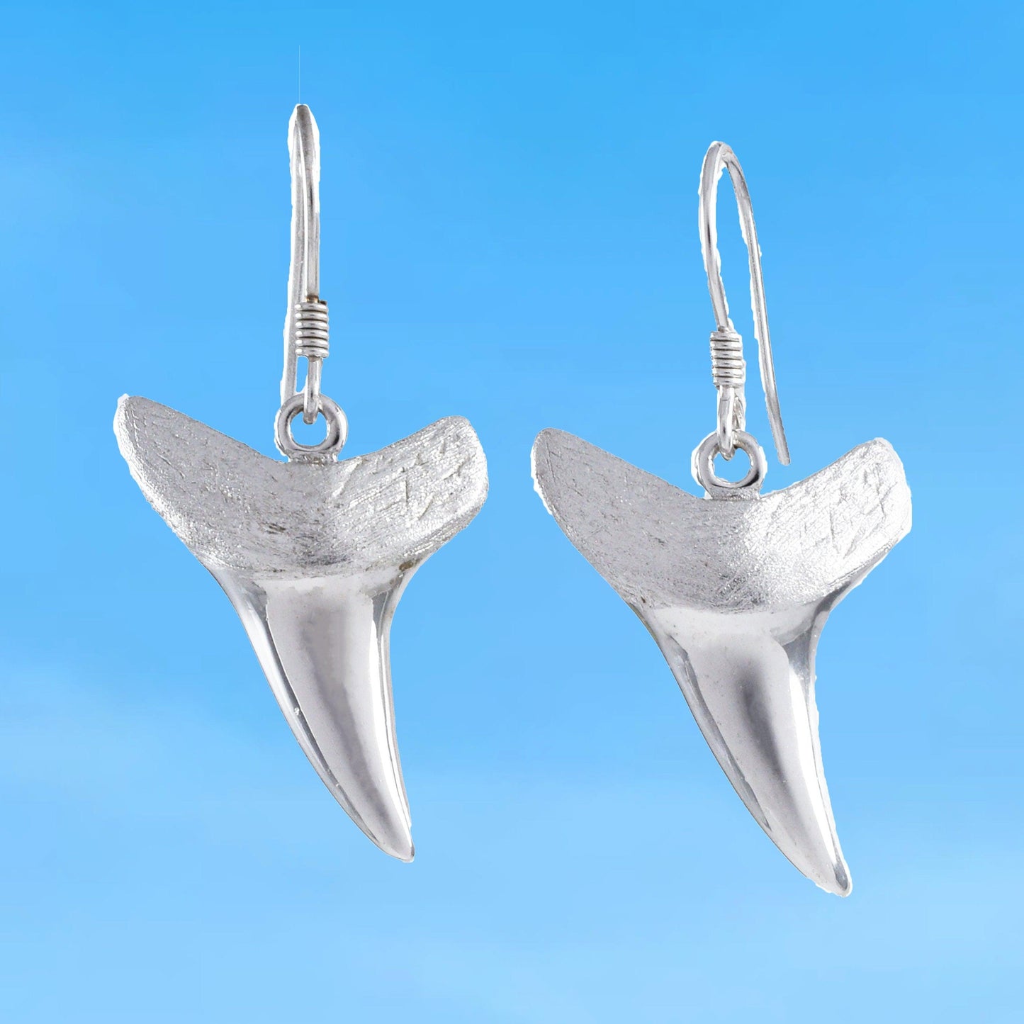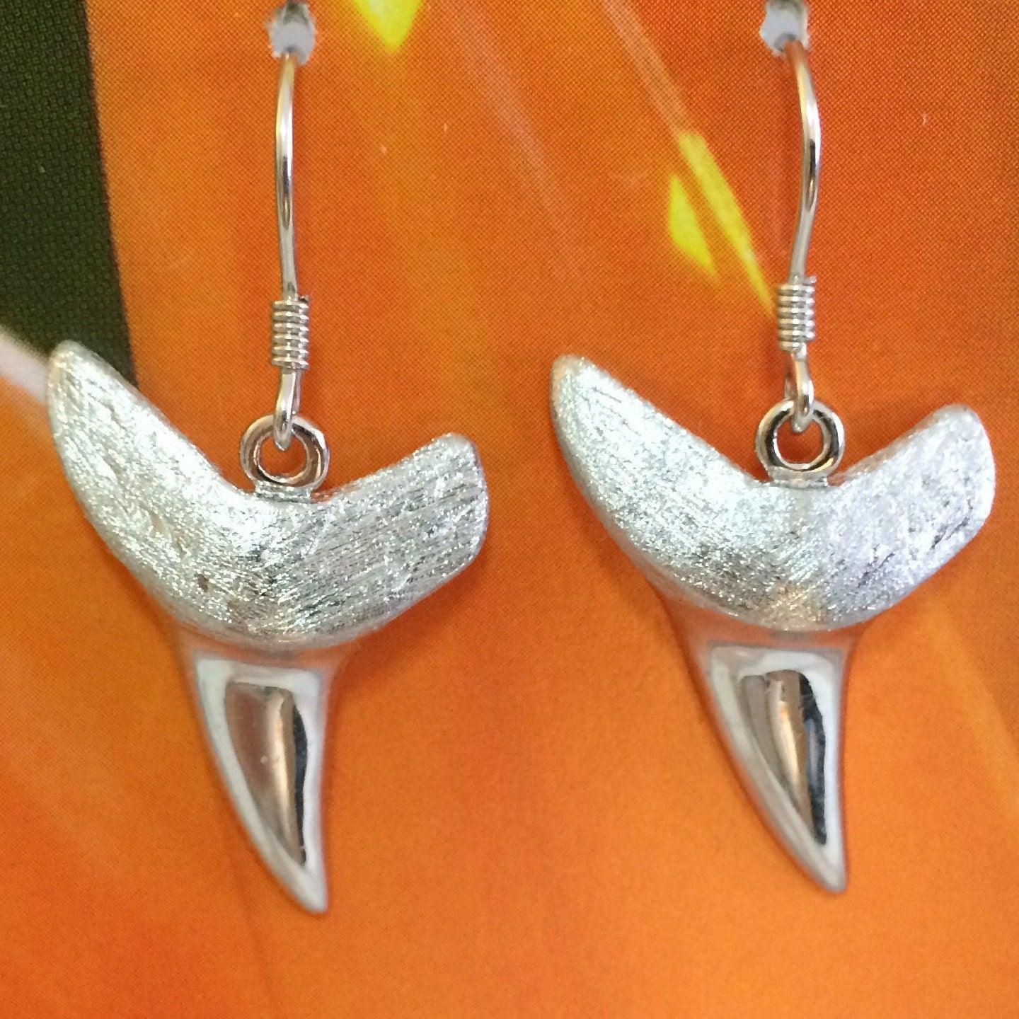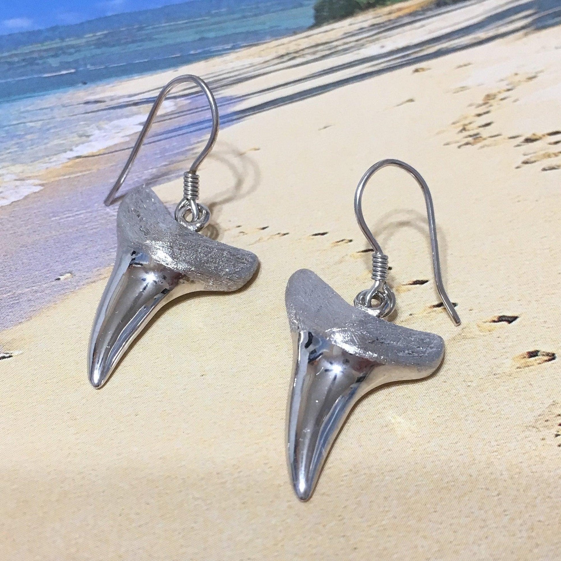 Unique Hawaiian Large 3D Shark Teeth Earring, Sterling Silver Shark Teeth Dangle Earring, E4148A Mother Birthday Mom Gift