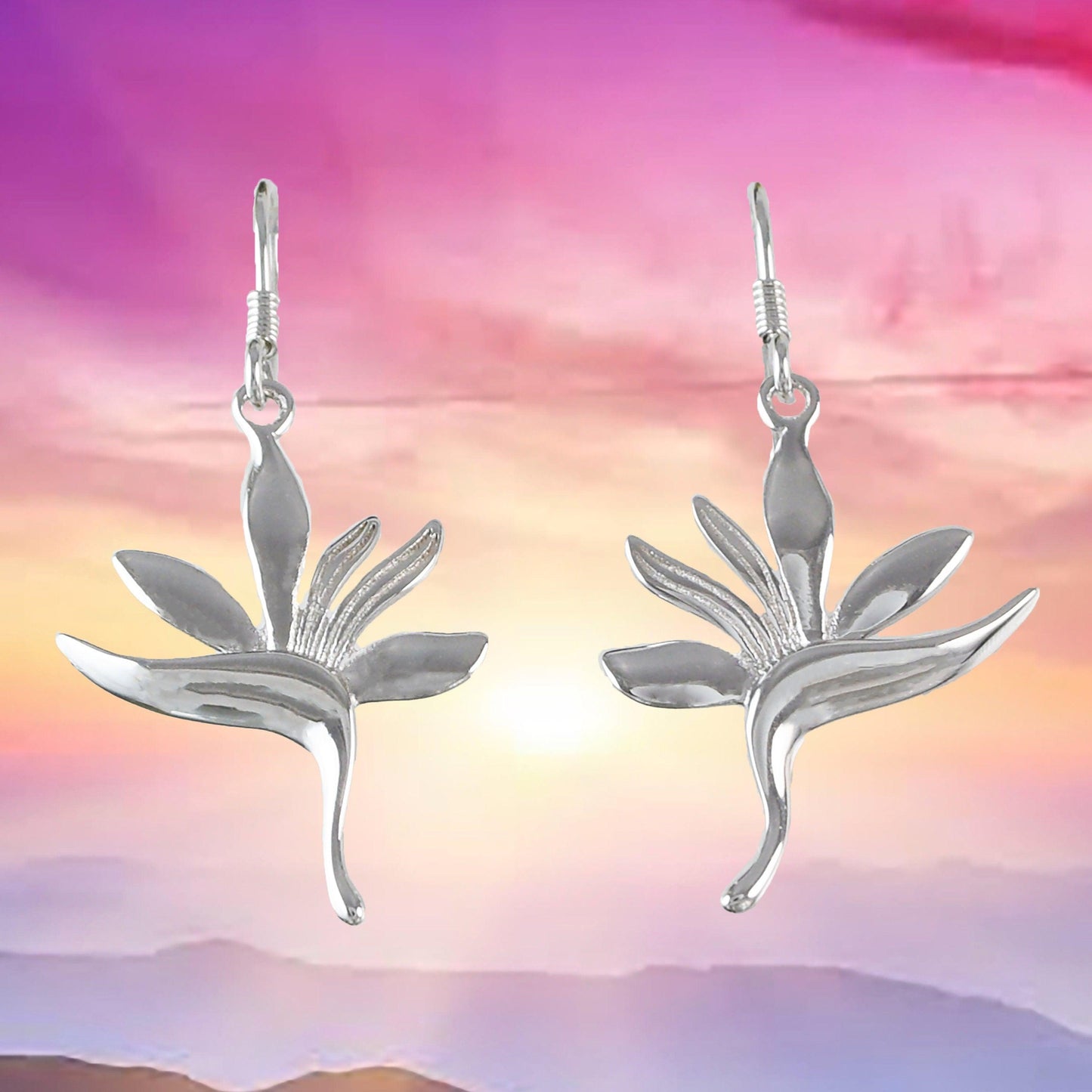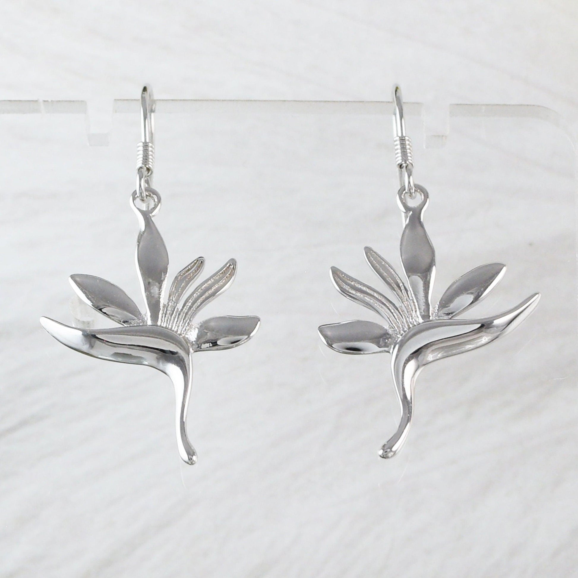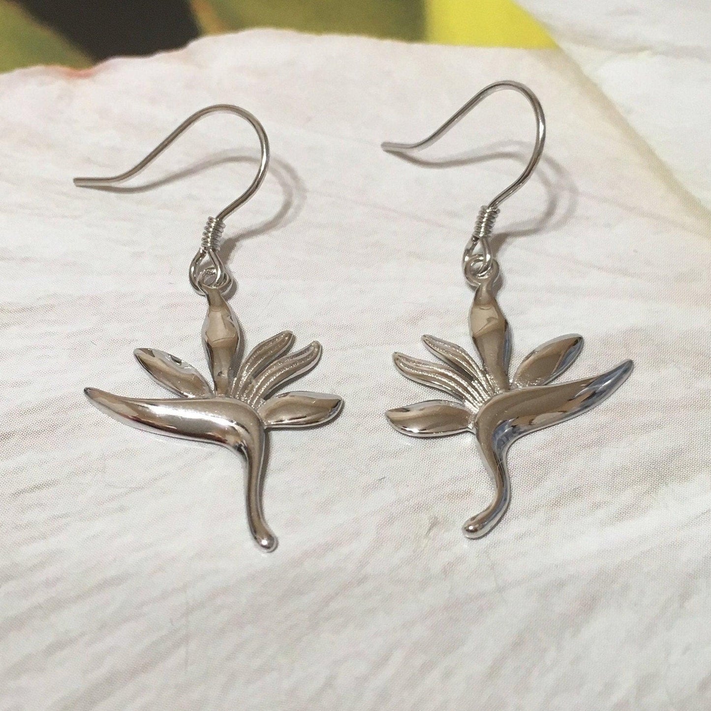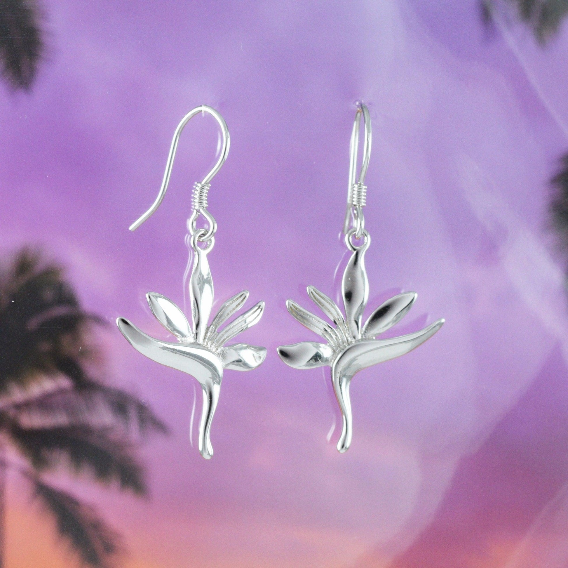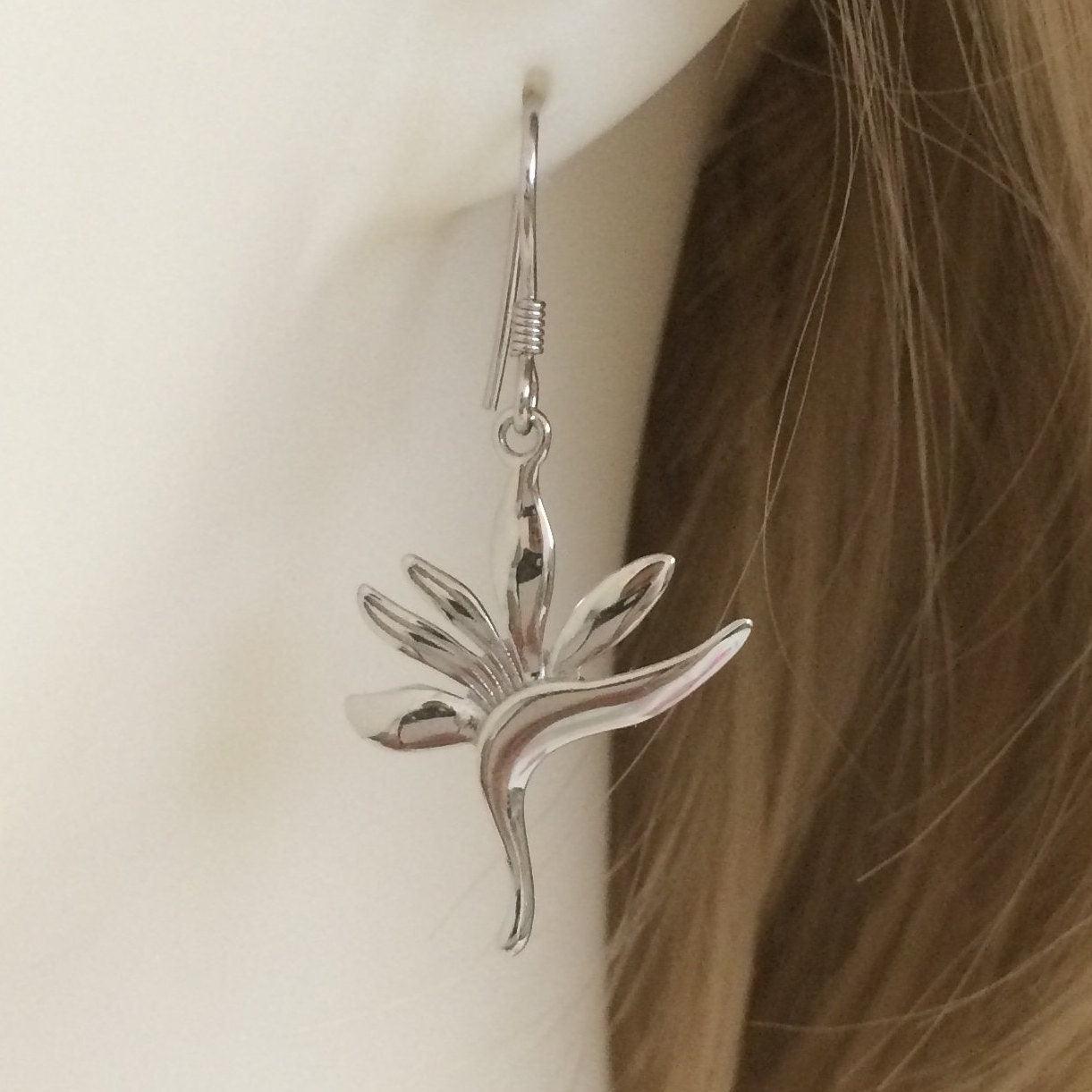 Unique Hawaiian Large Bird of Paradise Earring, Sterling Silver Bird of Paradise Flower Dangle Earring, E4108 Birthday Mom Mother Gift