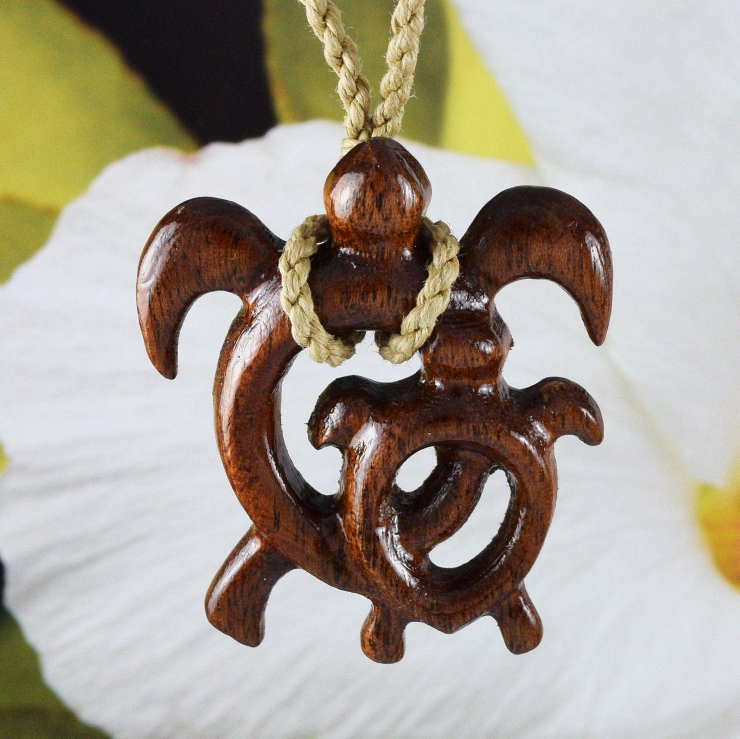 Unique Hawaiian Large Mom & Baby Sea Turtle Necklace, Hand Carved Genuine Koa Wood Turtle Necklace, N9136 Birthday Mother Gift