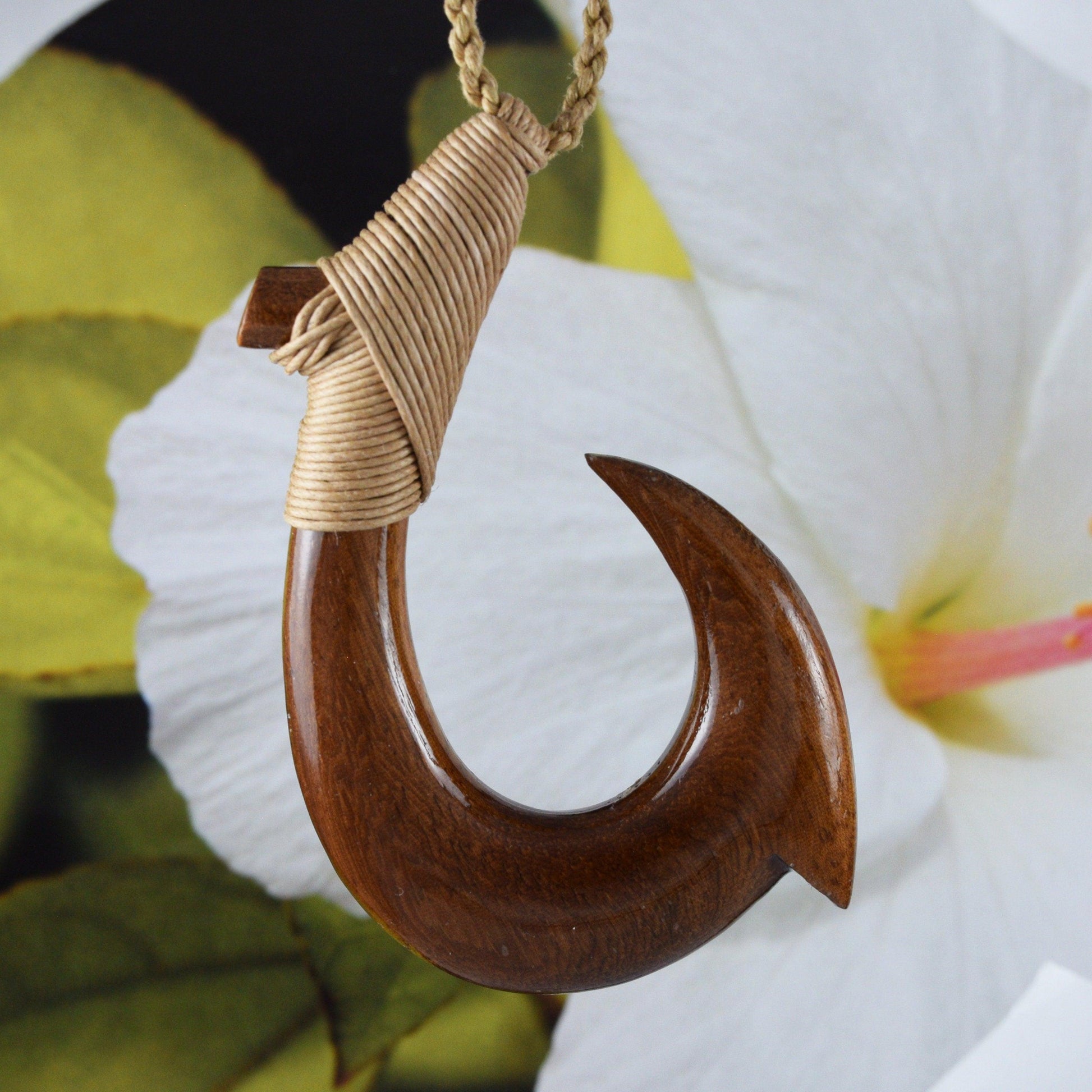 Unique Hawaiian XX-Large Koa Wood Fish Hook Necklace, Hand Carved Genuine Koa Wood Fish Hook Necklace, N9134 Birthday Valentine Gift