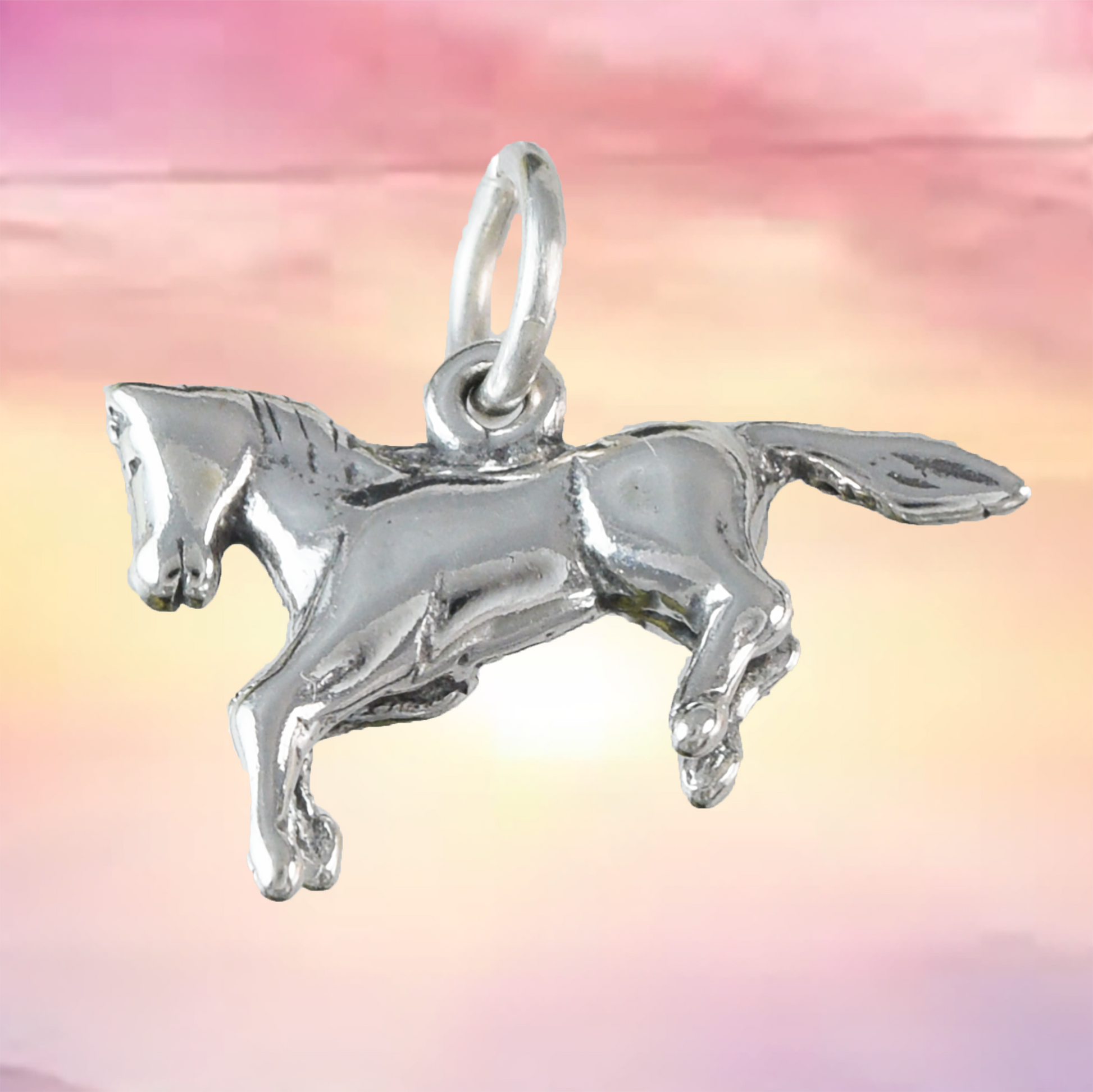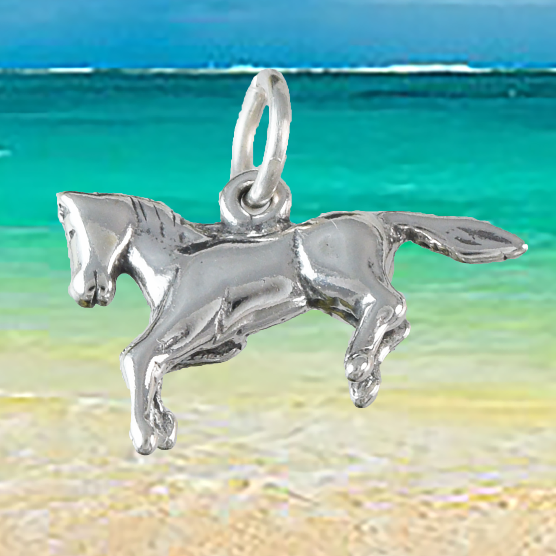 Texan Leaping 3D Horse Charm Pendant Necklace in Sterling Silver, N9495