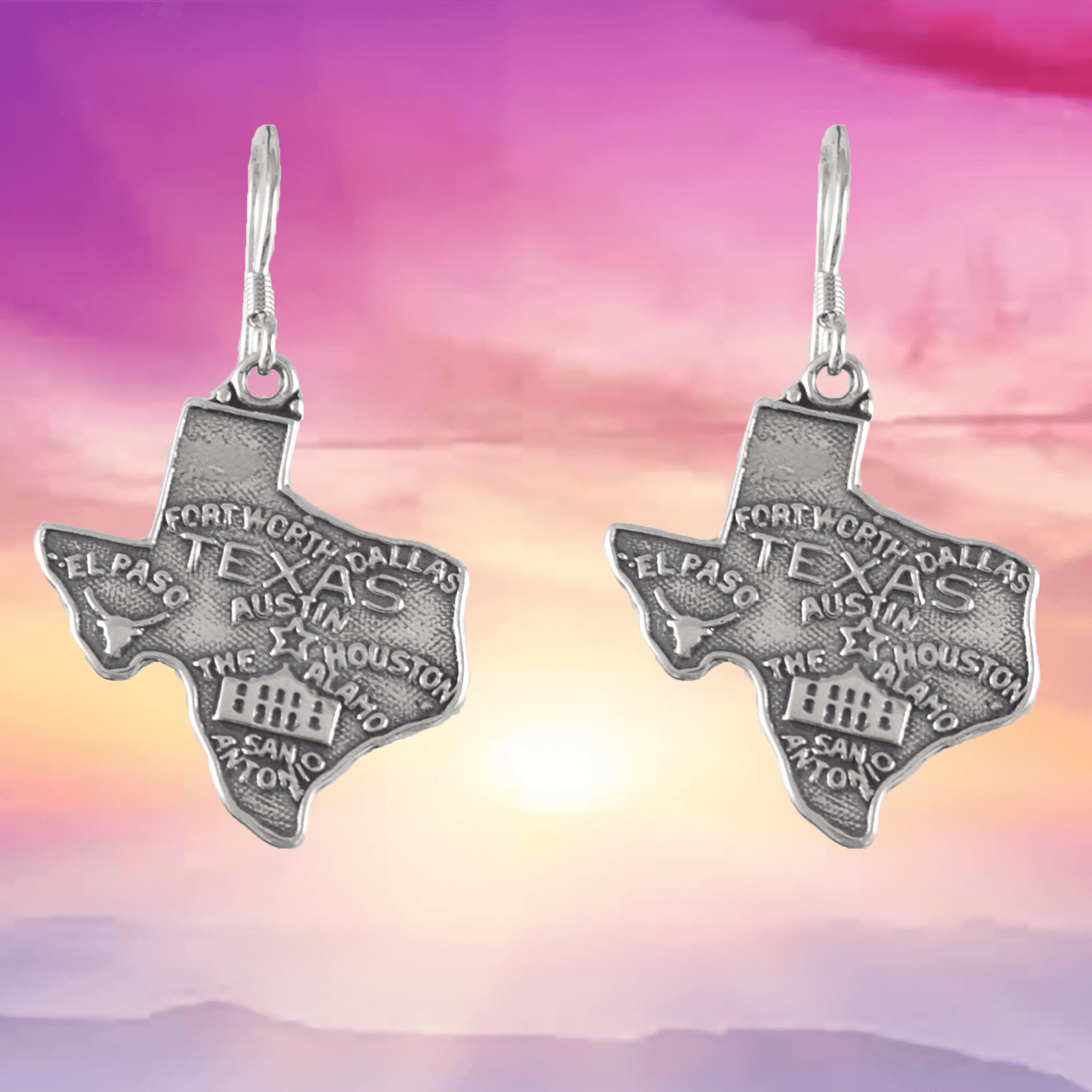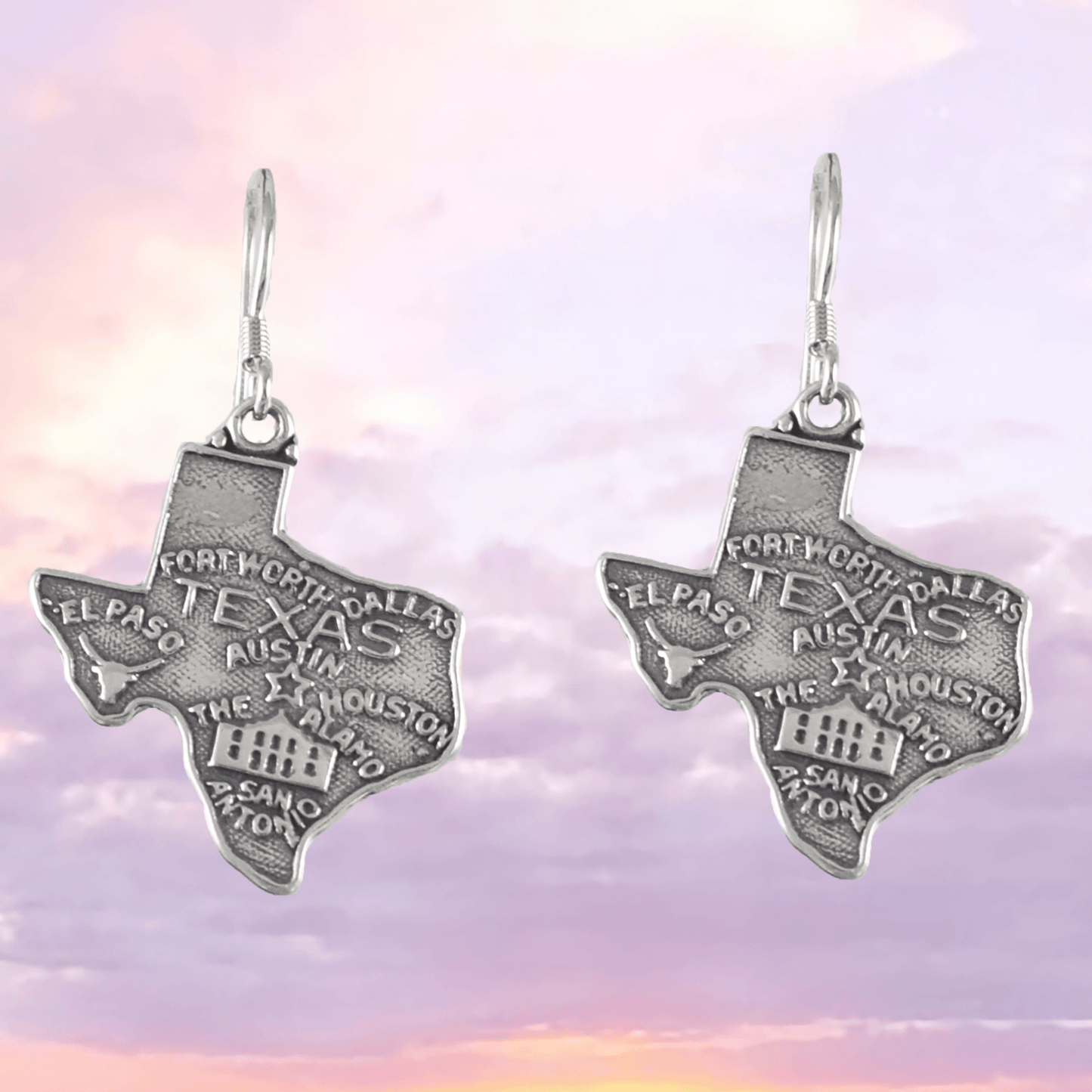 Sterling Silver Map of Texas Dangle Earring