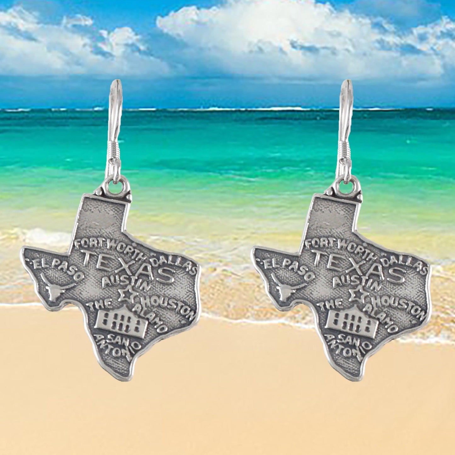 Unique Texas Map Earring, Sterling Silver Map of Texas Dangle Earring, E9457 Birthday Mom Wife Mother Gift, Texan Jewelry